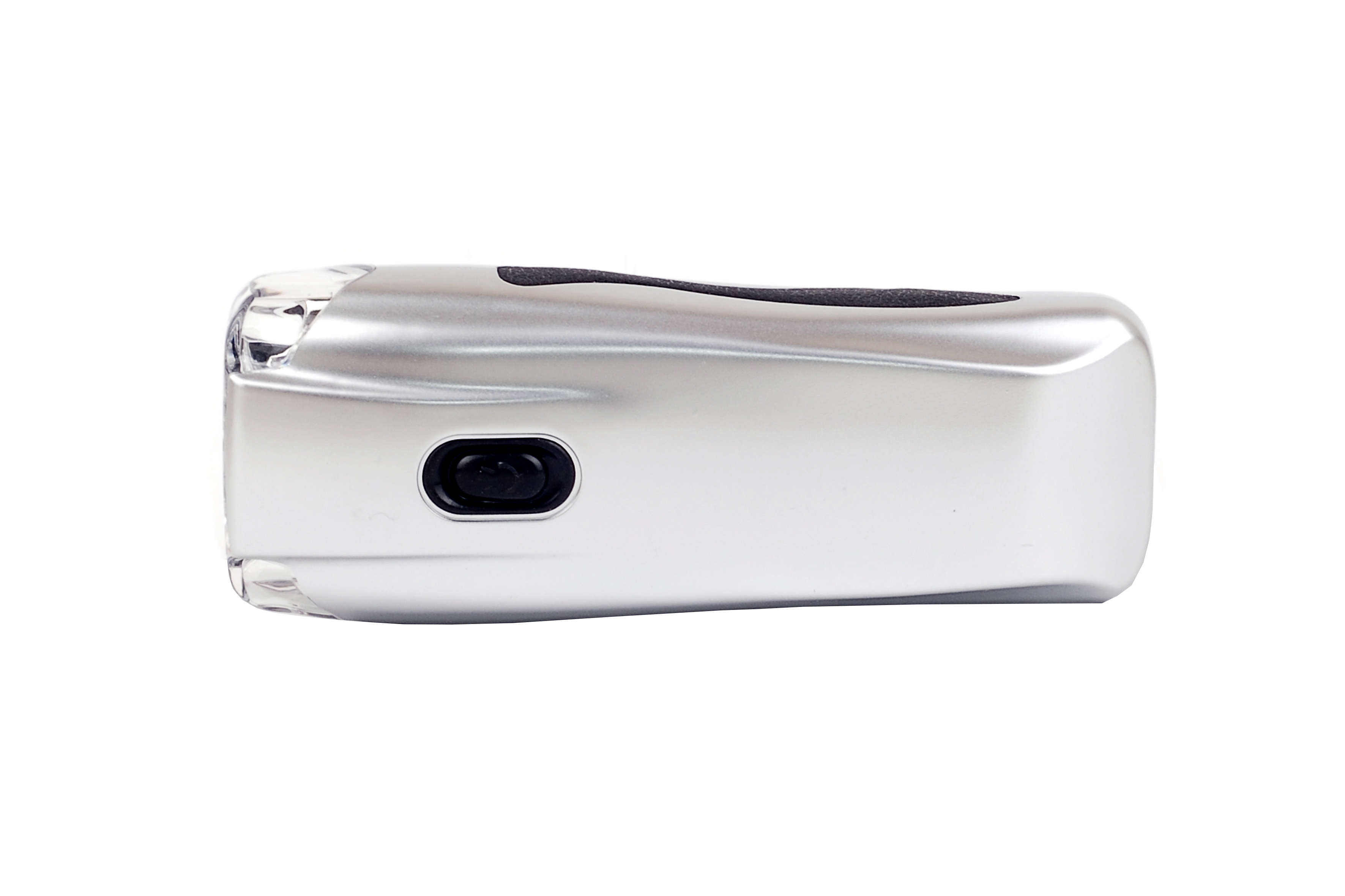 15 x 4,5 x 5,5 cm. Plástico. Linterna recargable con 3 LEDS de luz blanca, interruptor y manivela para recargar dínamo. Proporciona 5 minutos de luz por cada minuto de recarga. Funciona sin pilas.