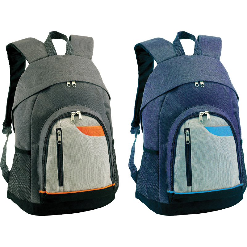 32 x 44 x 13 cm. Capacidad 15 litros Aprox. Polyester 600D. Compartimento principal con cierre. 2 bolsillos frontales externos con cierre. 2 bolsillos laterales externos de red. Correas y parte trasera forradas.