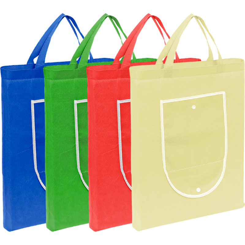 40 x 47.5 cm (abierta) / 20,5 x 12 cm (cerrada)-Non-woven. Bolsa que posee un bolsillo frontal con vivos blancos alrededor y un cierre de botón.