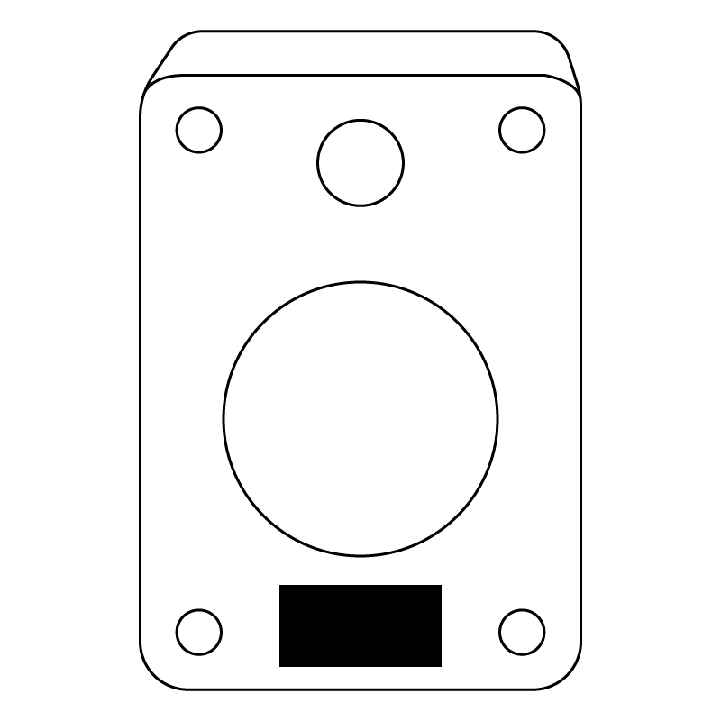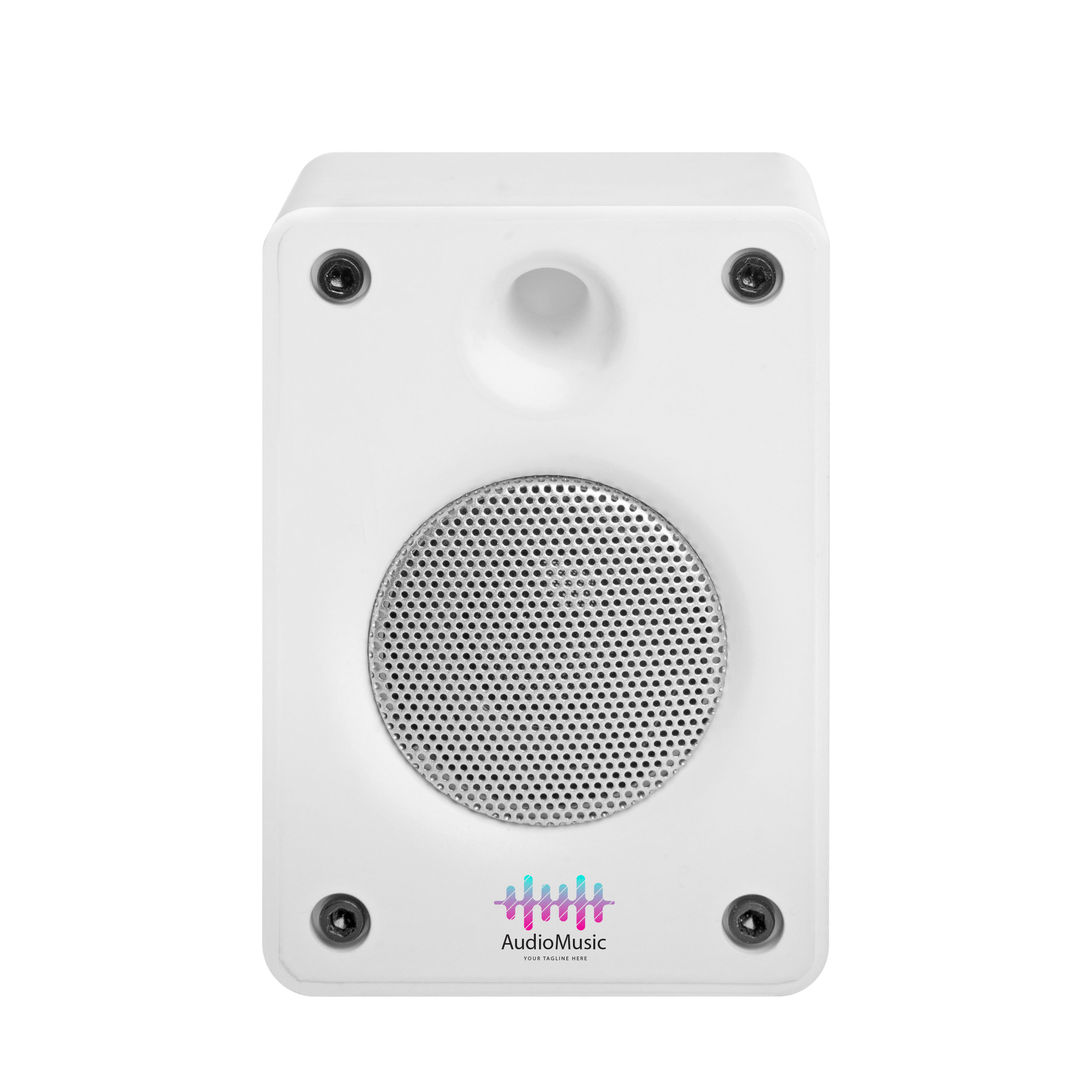 9 x 6 x 4,6 cm. Plástico. Bocina Bluetooth. En la parte interna engomado. Se puede conectar por bluetooth y cable mini USB.