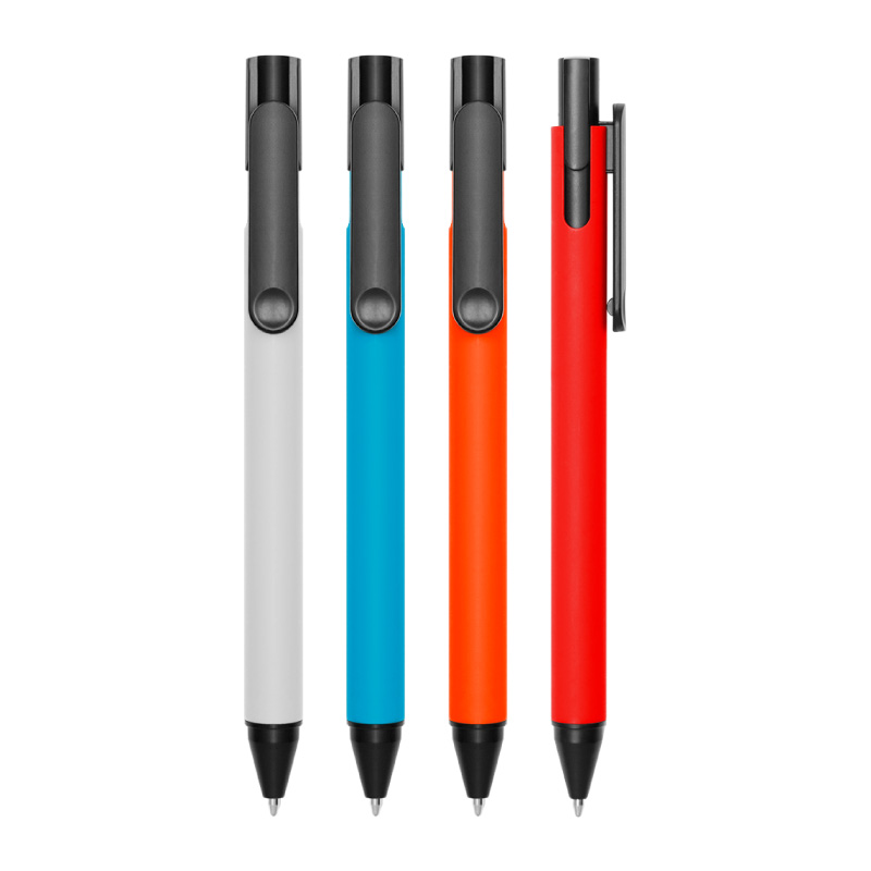 Plástico. Cuerpo mate de color. Pulsador, clip y punta plásticos color negro. Detalle en el clip