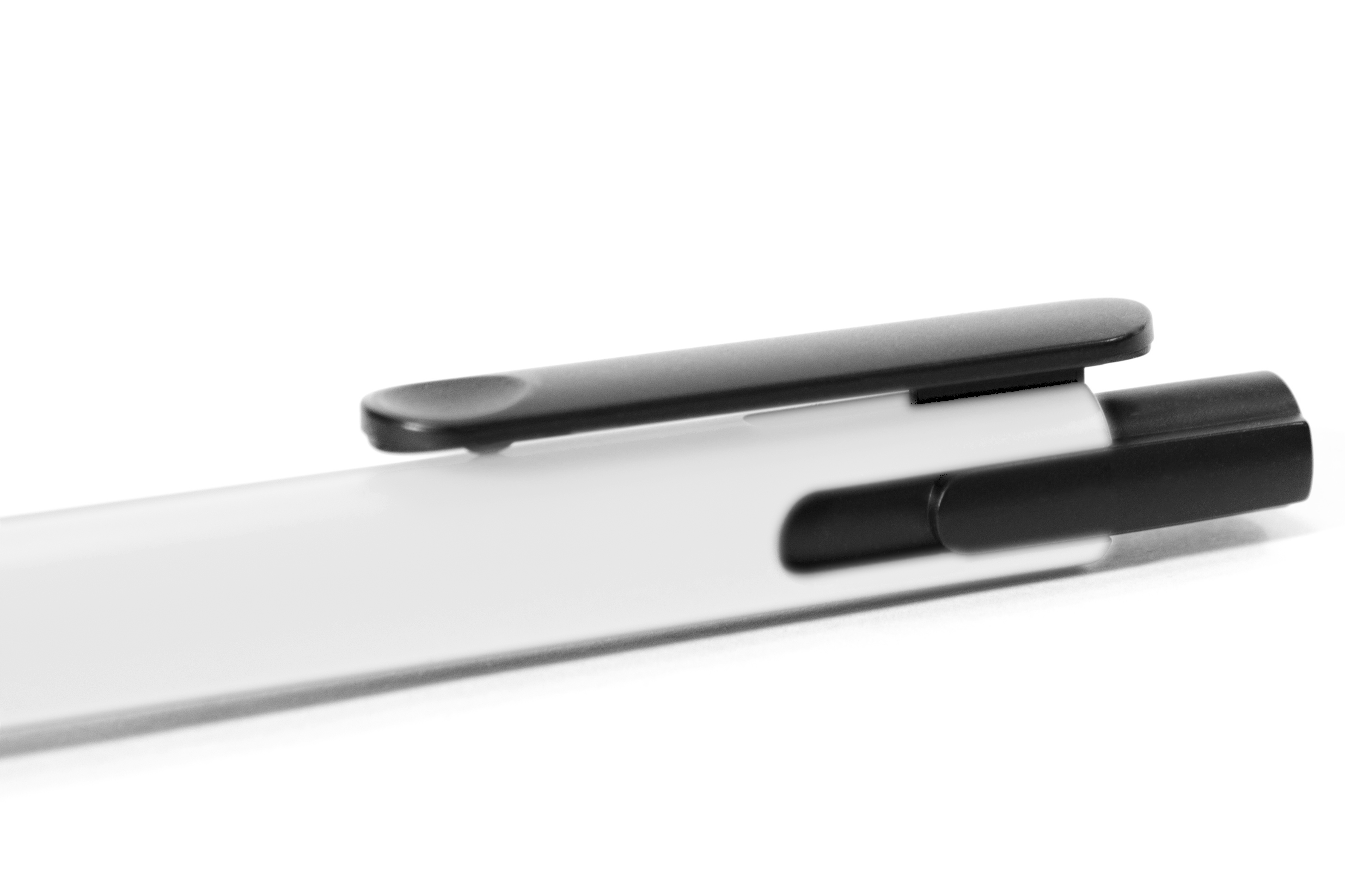 Plástico. Cuerpo mate de color. Pulsador, clip y punta plásticos color negro. Detalle en el clip