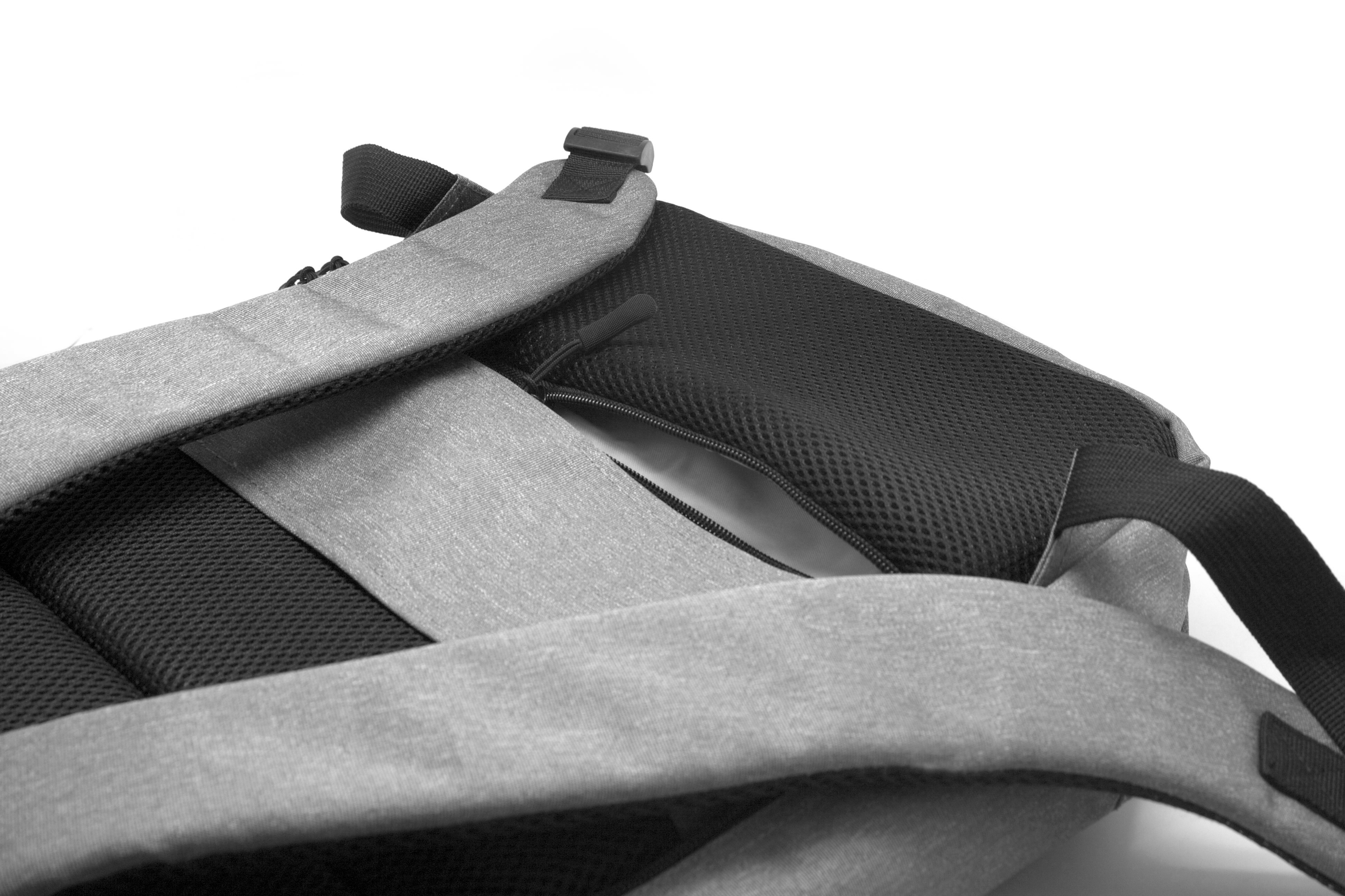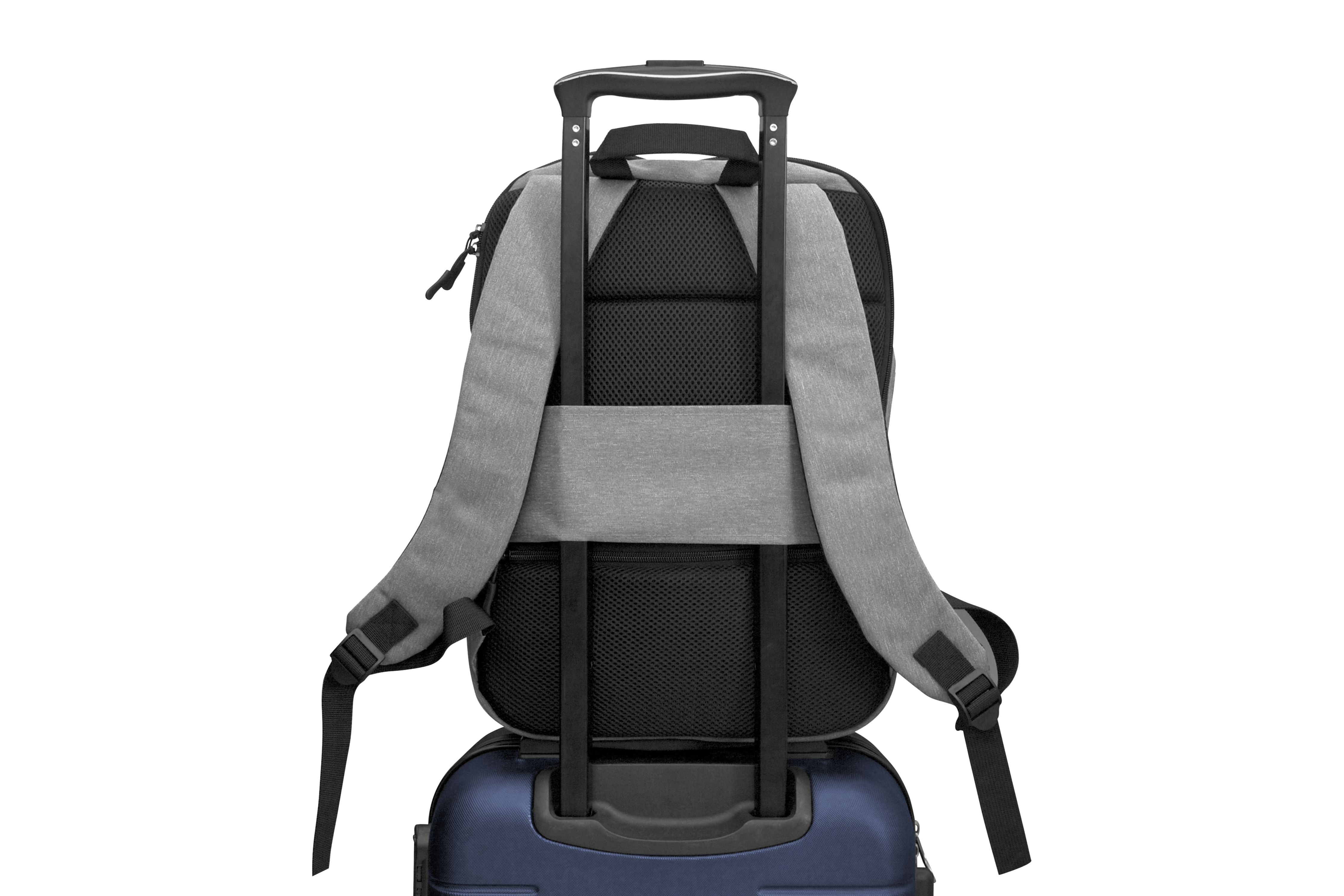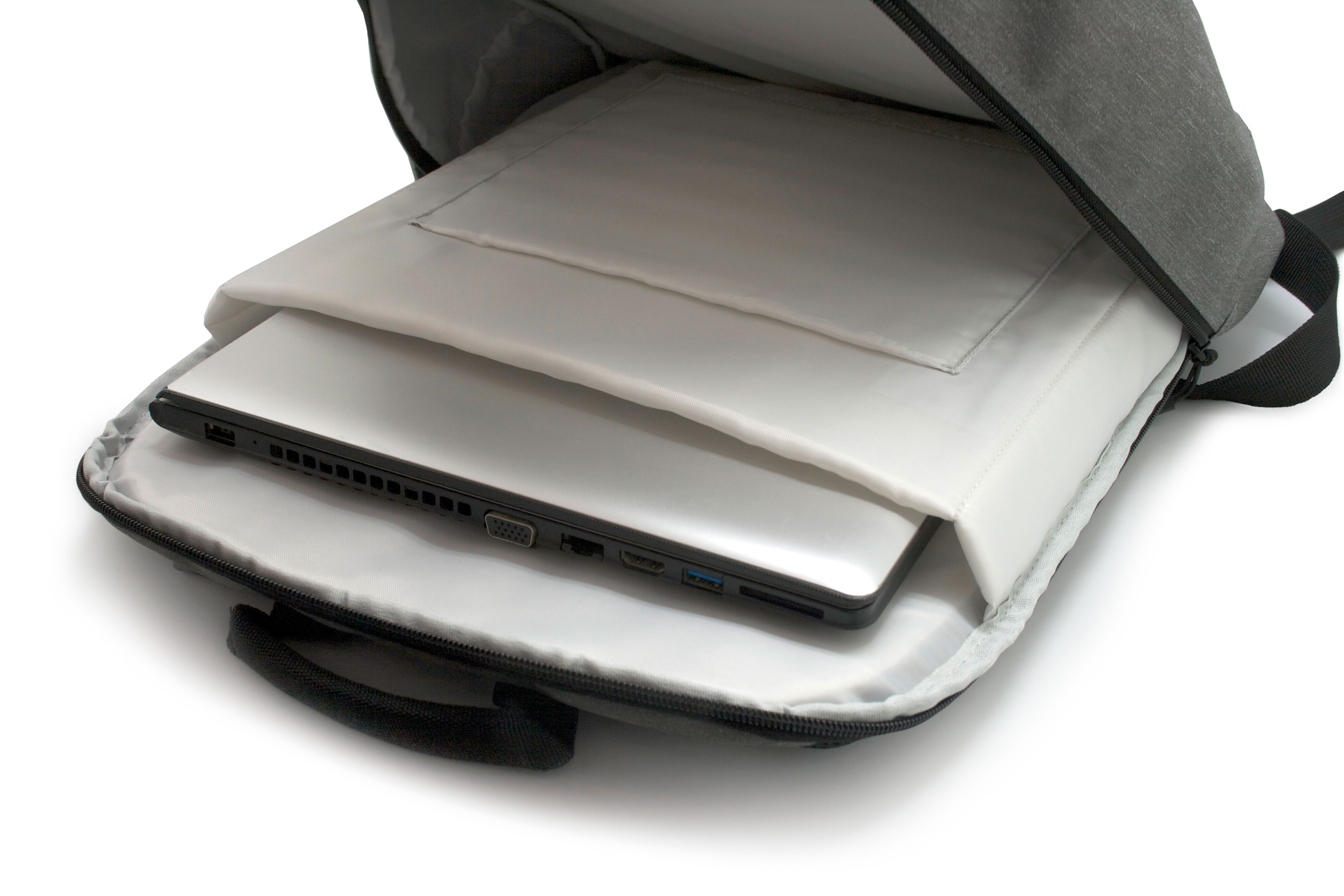 43,5 x 32 x 10 cm. Capacidad 14 litros. Poliéster 600D Snow: resistente al agua. Porta Notebook de hasta 15". Compartimento principal acojinado y forrado con espacio para guardar una notebook. Bolsillo frontal de amplio espacio. Correas ajustables y espalda acojinadas con red que permite la ventilación. Bolsillo de seguridad con cierre en espalda. Tira para sujetar la mochila en la manija extensible de un equipaje de mano. El cierre del compartimento principal es invisible. Tiradores de cierres engomados.