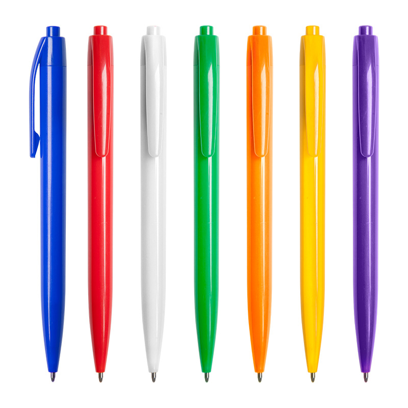 Plástico. Bolígrafo con cuerpo plástico de color con pulsador.