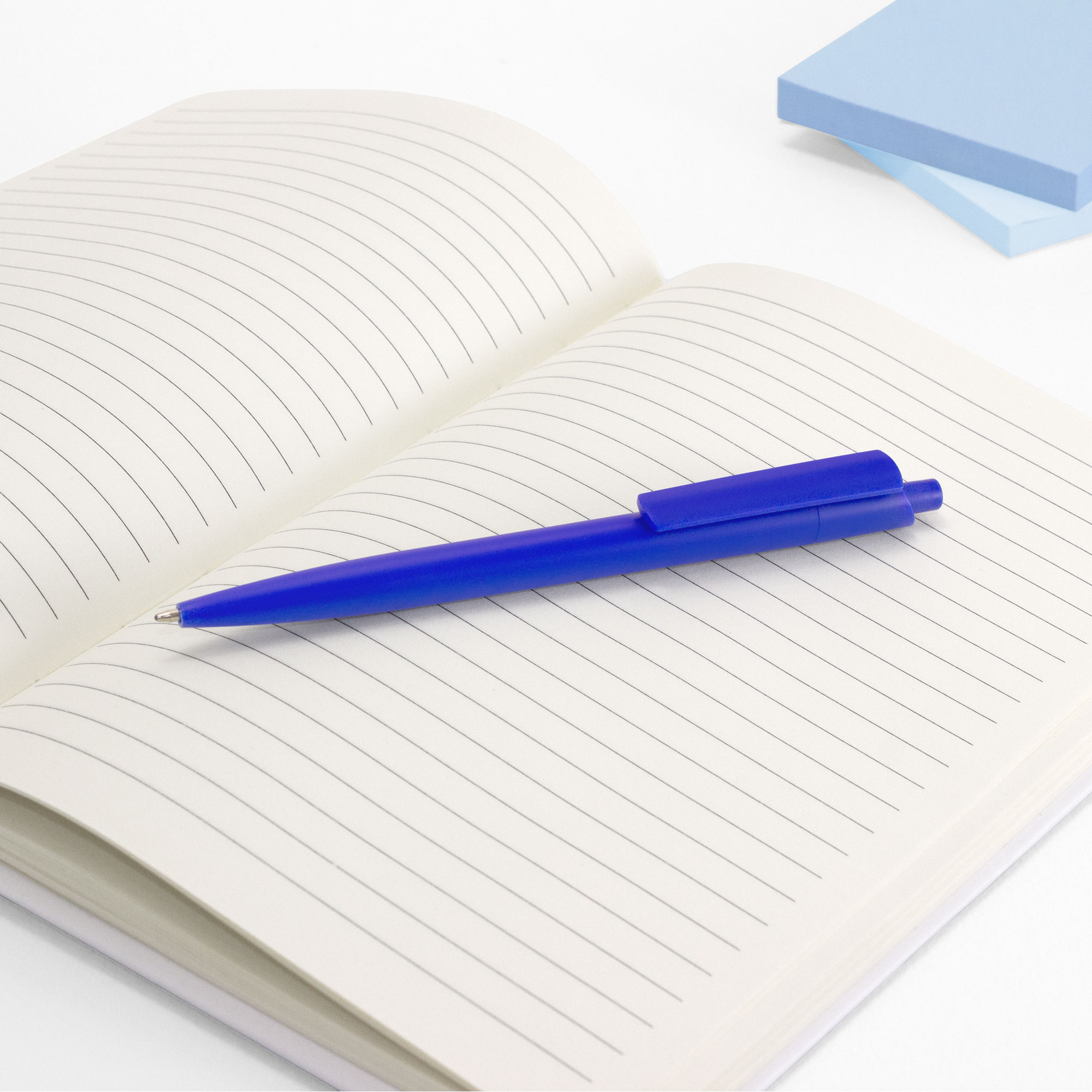 Bolígrafo retráctil. Cuerpo de diferentes colores. Acabado mate. Pulsador, clip y puntera del mismo color del cuerpo. Amplia área de impresión.