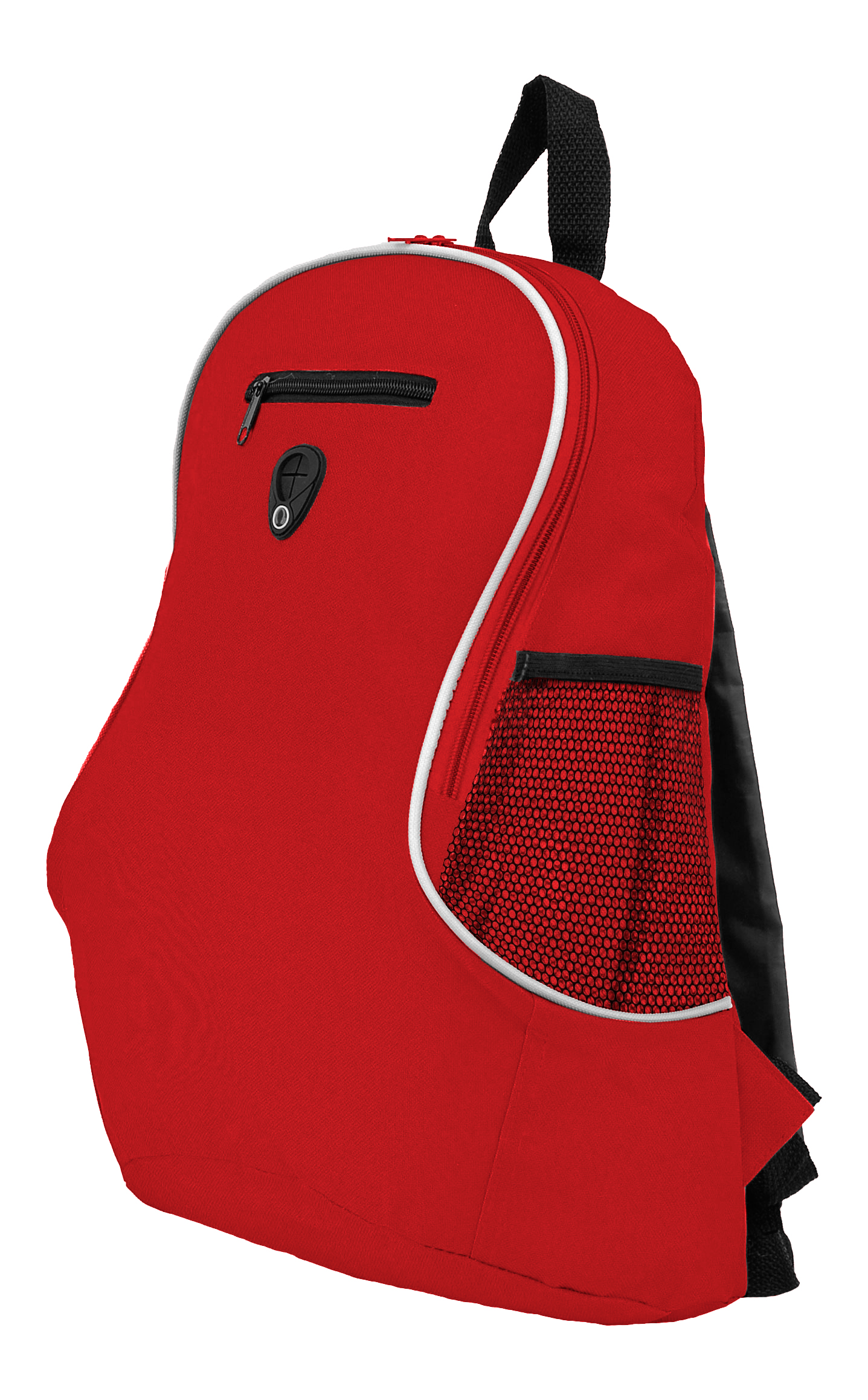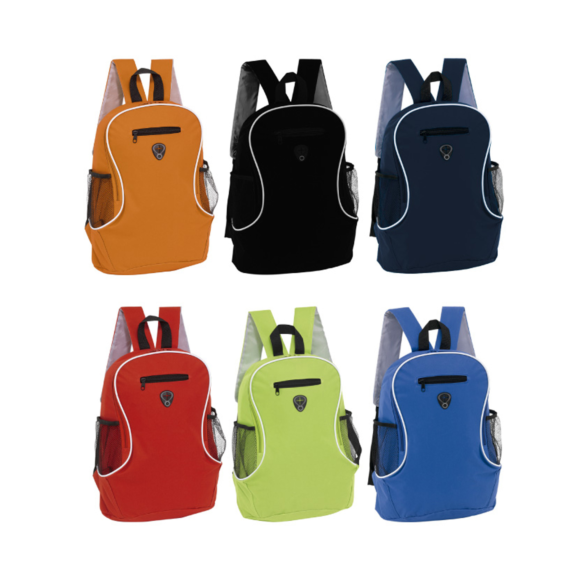 40 x 29 x 17,5 cm. Capacidad 16 litros. Aprox. Poliéster 600D. Compartimento principal con bolsillo frontal con cierre. Dos bolsillos laterales de red porta bebidas. Correas ajustables. Cierres metálicos. Salida para audífonos.