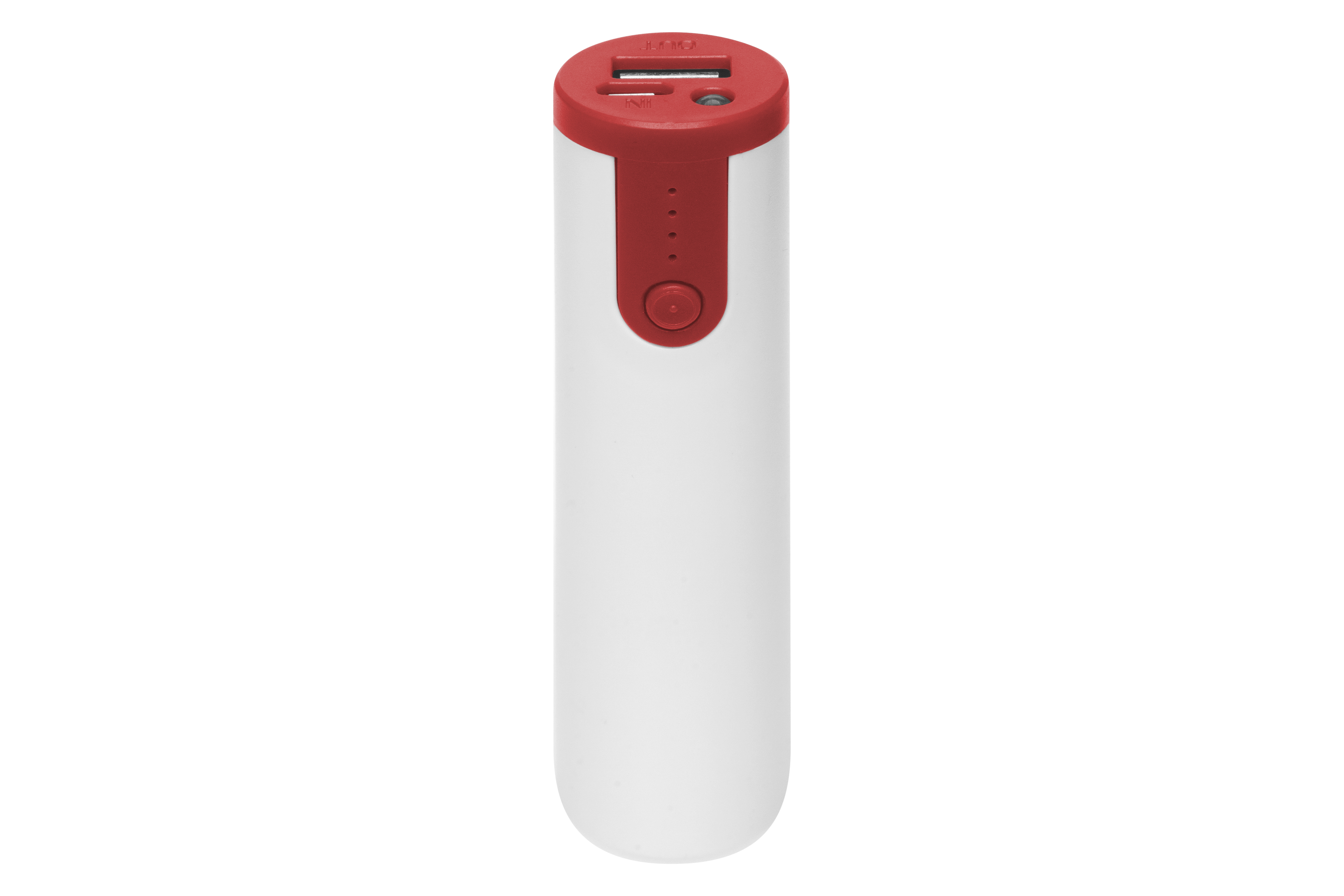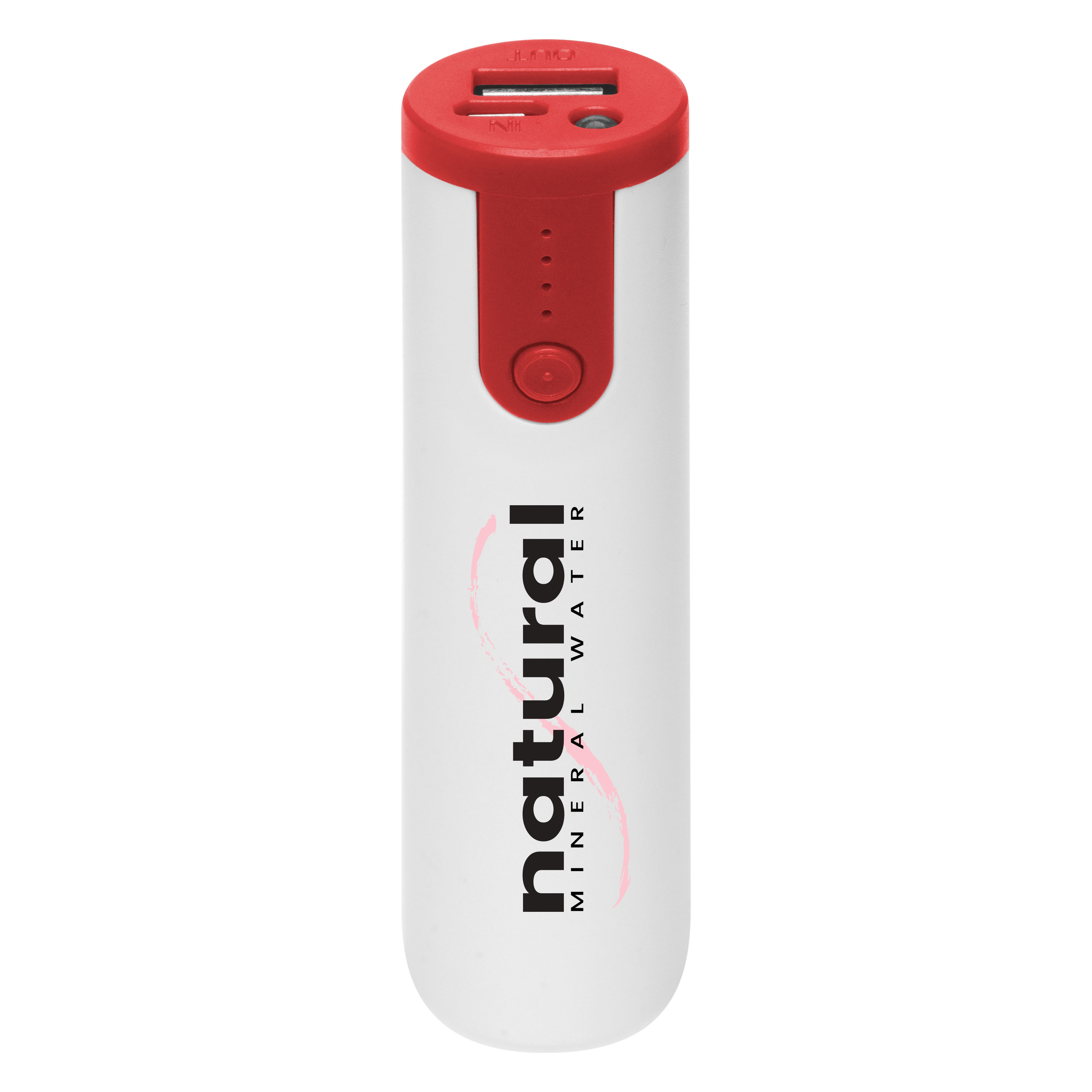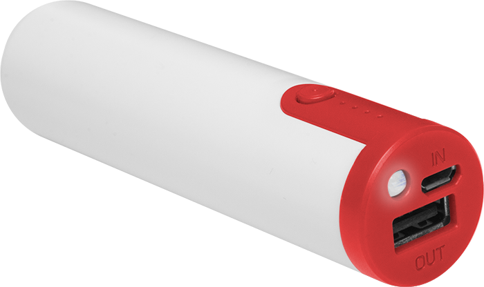 Ø 2,5 x 10 cm. Plástico. Capacidad 2200 mAh. Power bank con linterna. Luces indicadoras de carga. Botón que al presionar dos veces enciende la linterna y al presionar otras dos veces cambia a luz intermitente. Compatible con todos los celulares. Con certificación de calidad.