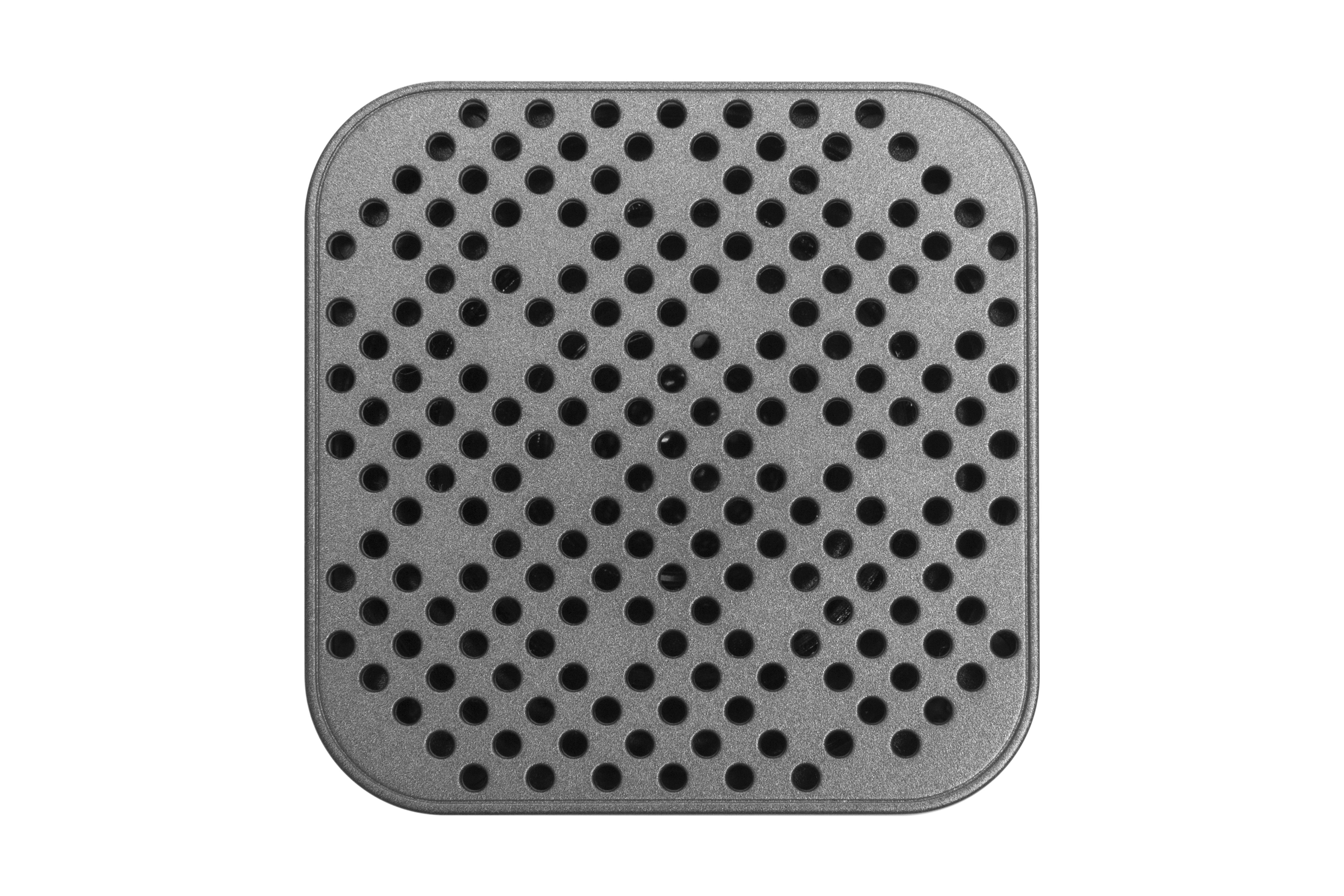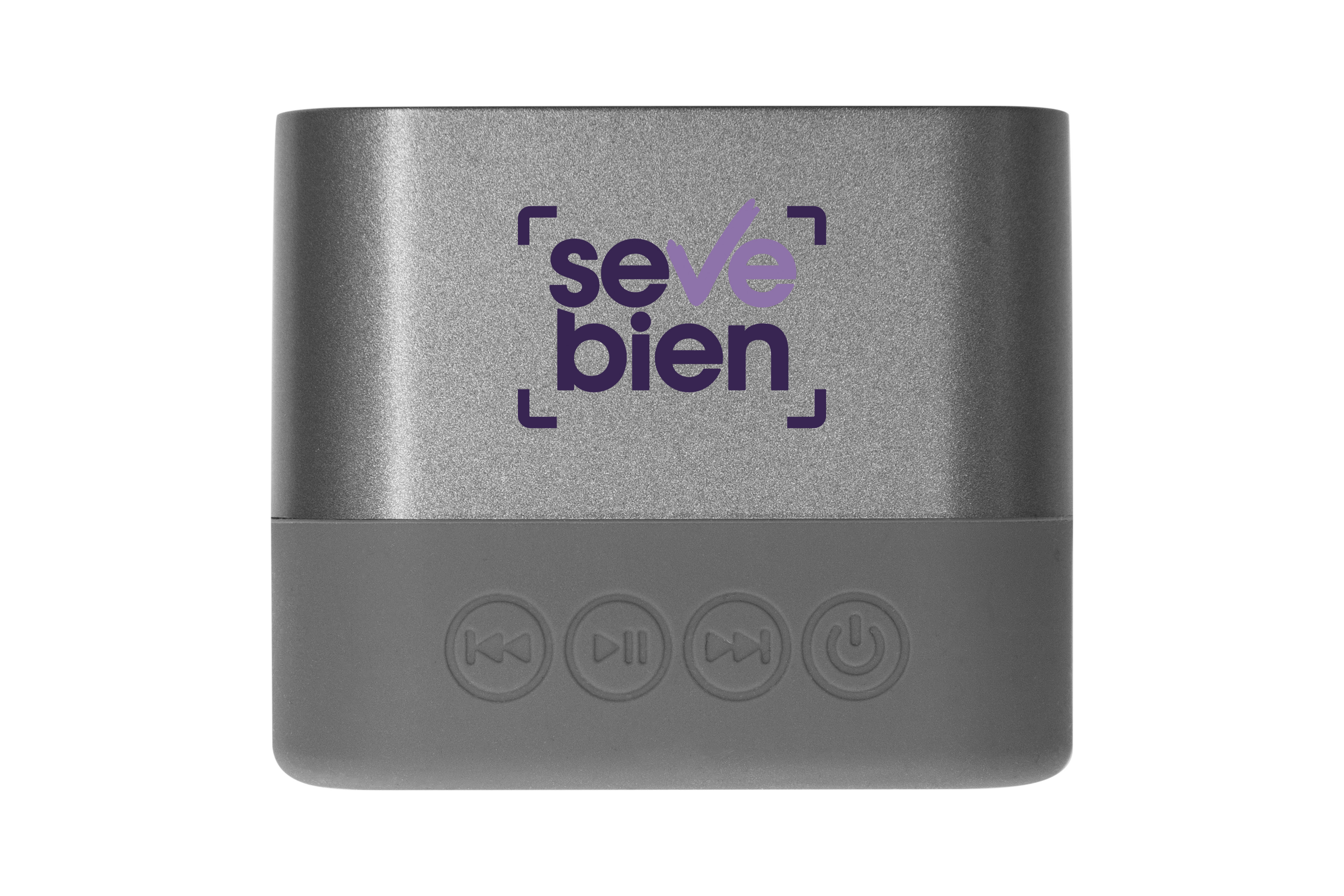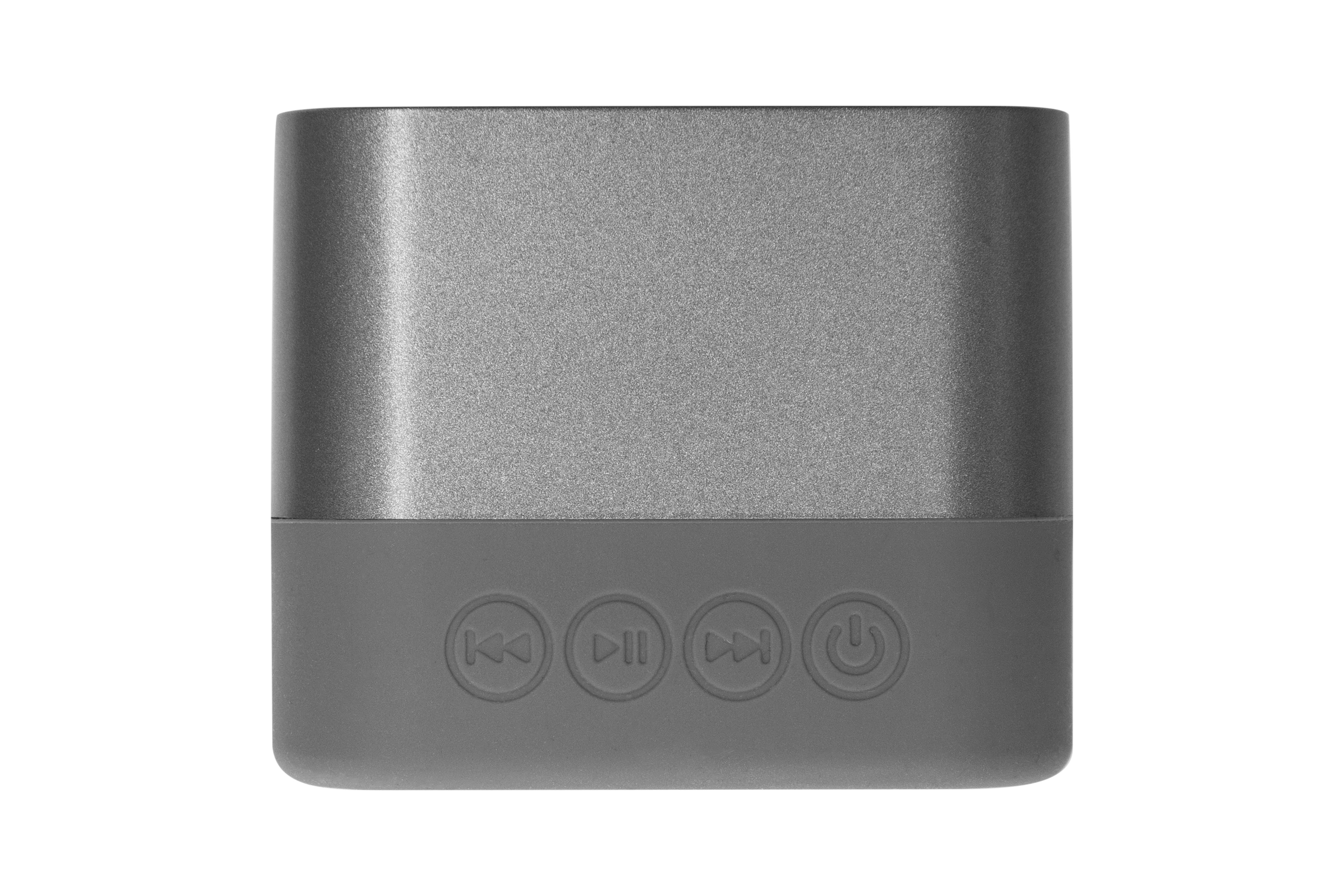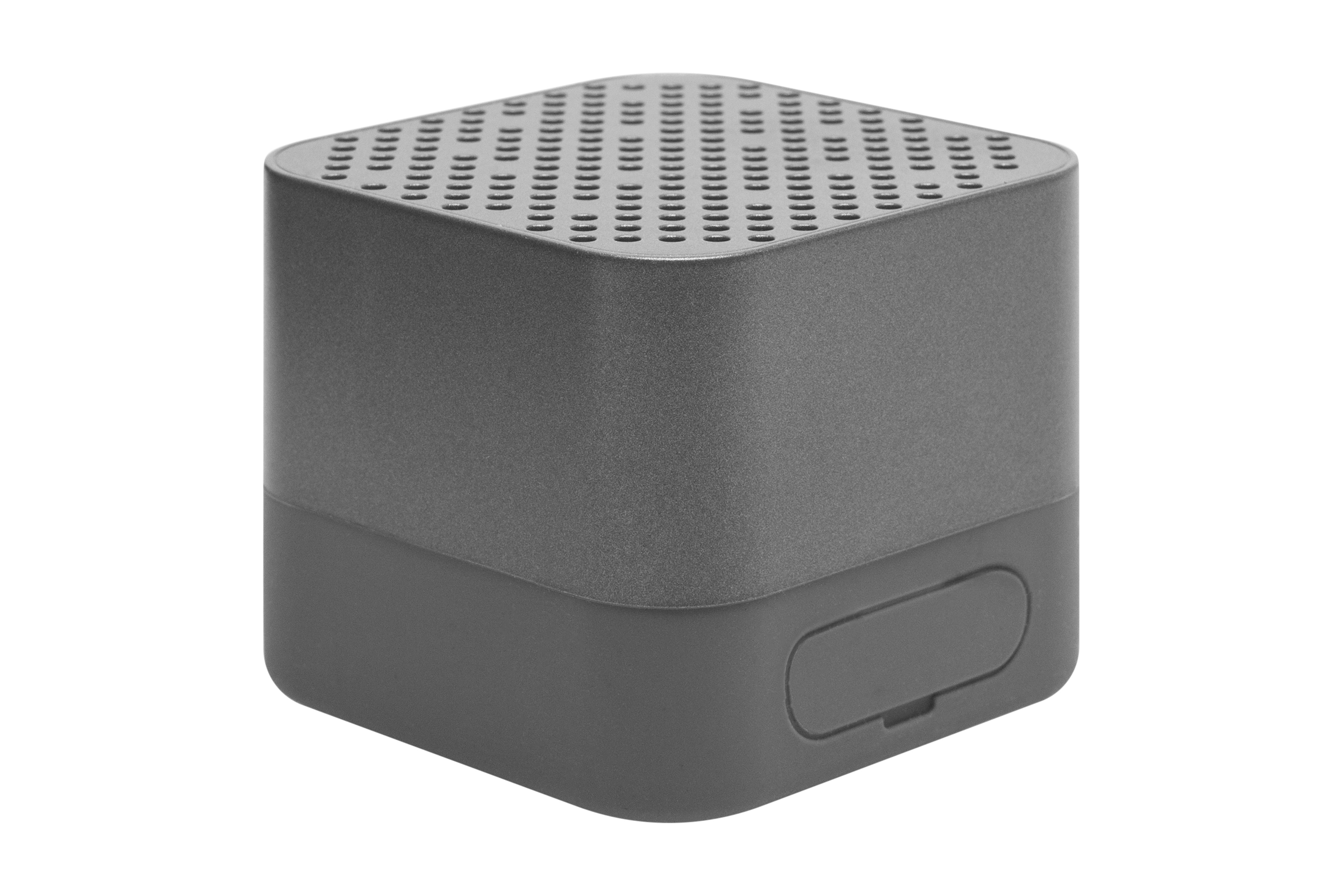 5,8 x 5,8 x 4,8 cm. Plástico. Bocina bluetooth cuadrado, en la parte inferior goma antideslizante. Botones de Power: on/off, botón de avance y retroceso que presionandolo durante unos segundos aumenta o disminuye el volumen y presionando solo una vez avanza o retrocede hacia otra canción, botón de play/pausa, luz led indicadora de encendido y entrada USB. Presentación en caja de regalo.