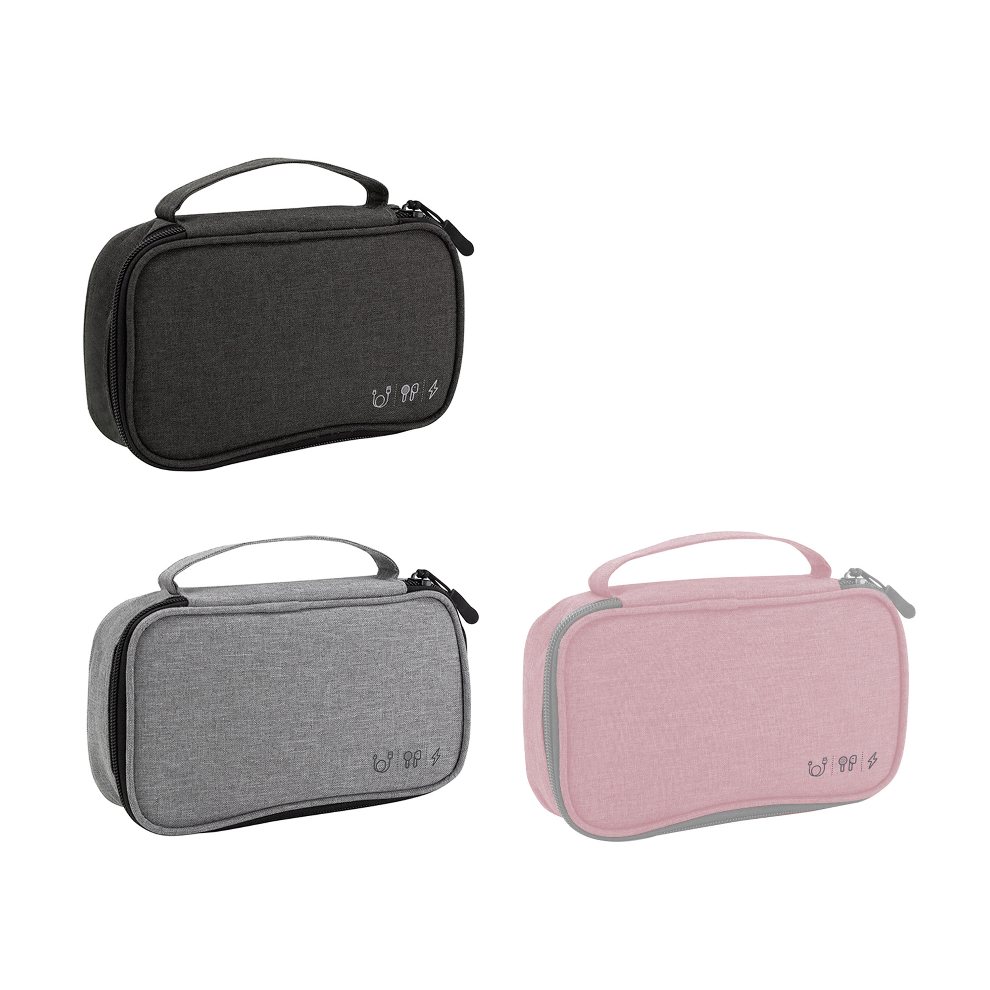 Organizador de cables. Estructura acolchada. Asa para transportar. Compartimento principal con cierre con tirador engomado. Interior forrado. En uno de sus lados cuenta con un bolsillo principal y dos pequeños de red, y en el lado contrario tiene un elástico con velcro multipropósito.