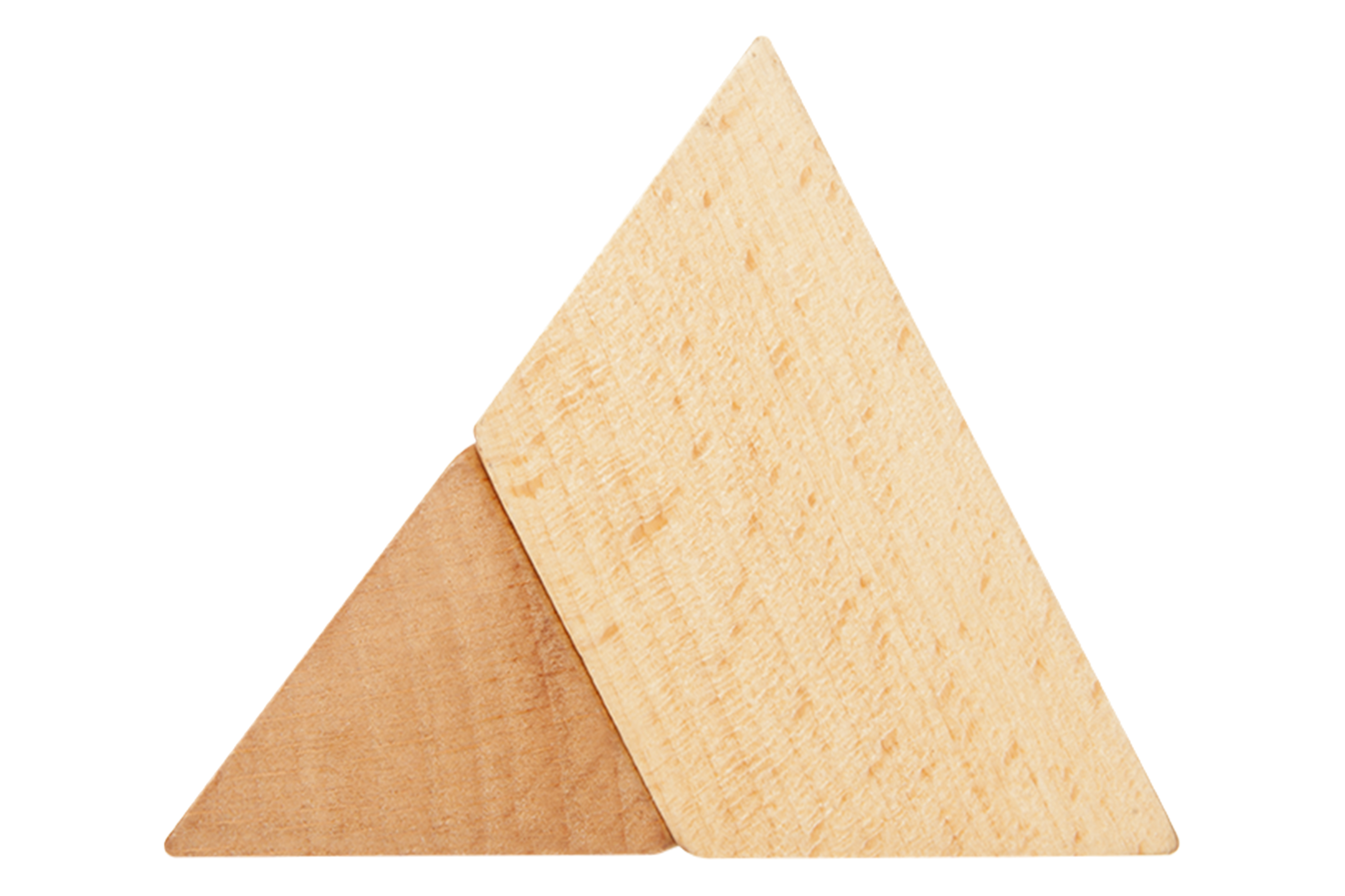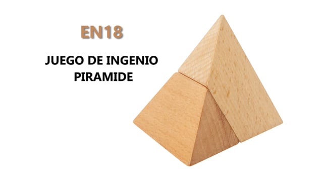 8 x 8 x 7,5 cm. Madera. Dos piezas de madera que al unirlas forman una pirámide. Presentación en caja de regalo.