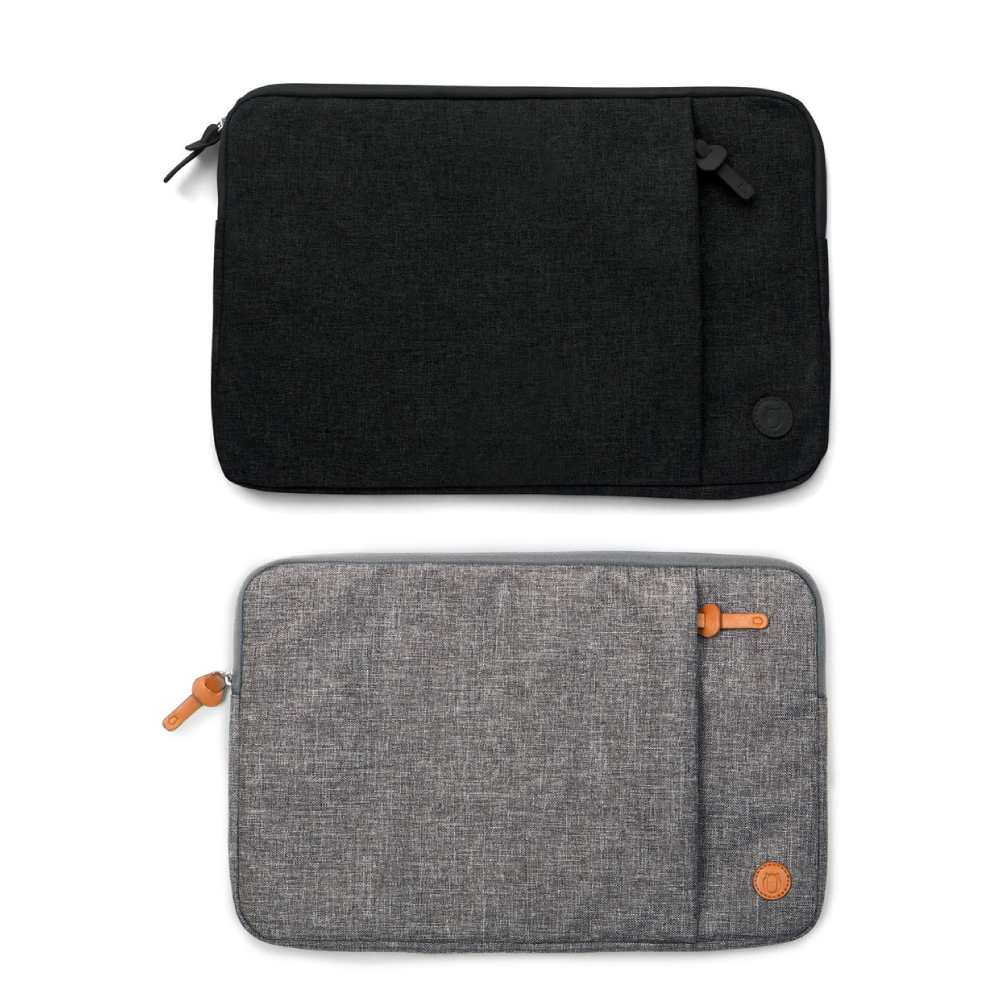 40 x 26 x 2 cm. Poliéster + Nylon + Poliuretano. Sobre Porta Notebooks. Práctica funda con protección para notebook de 15” y bolsillo exterior con cierre.