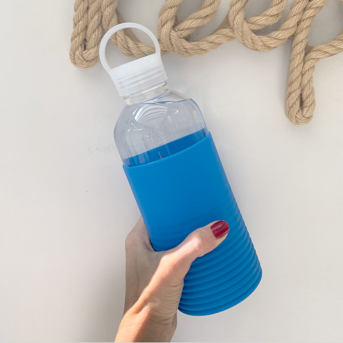 Ø 7,6 x 24cm. Capacidad 750ml. Vidrio borosilicato. Práctica, reutilizable y con más resistencia a los golpes (no irrompible!) ya que es de vidrio de borosilicato. Posee GRIP (manga) de silicona acanalada antideslizante en varios colores y pico ancho. Su tapa es a rosca, antiderrame y con manija de agarre. Es un producto BPA free, apto lavavajillas y certificado por INAL. Presentación en caja de regalo.