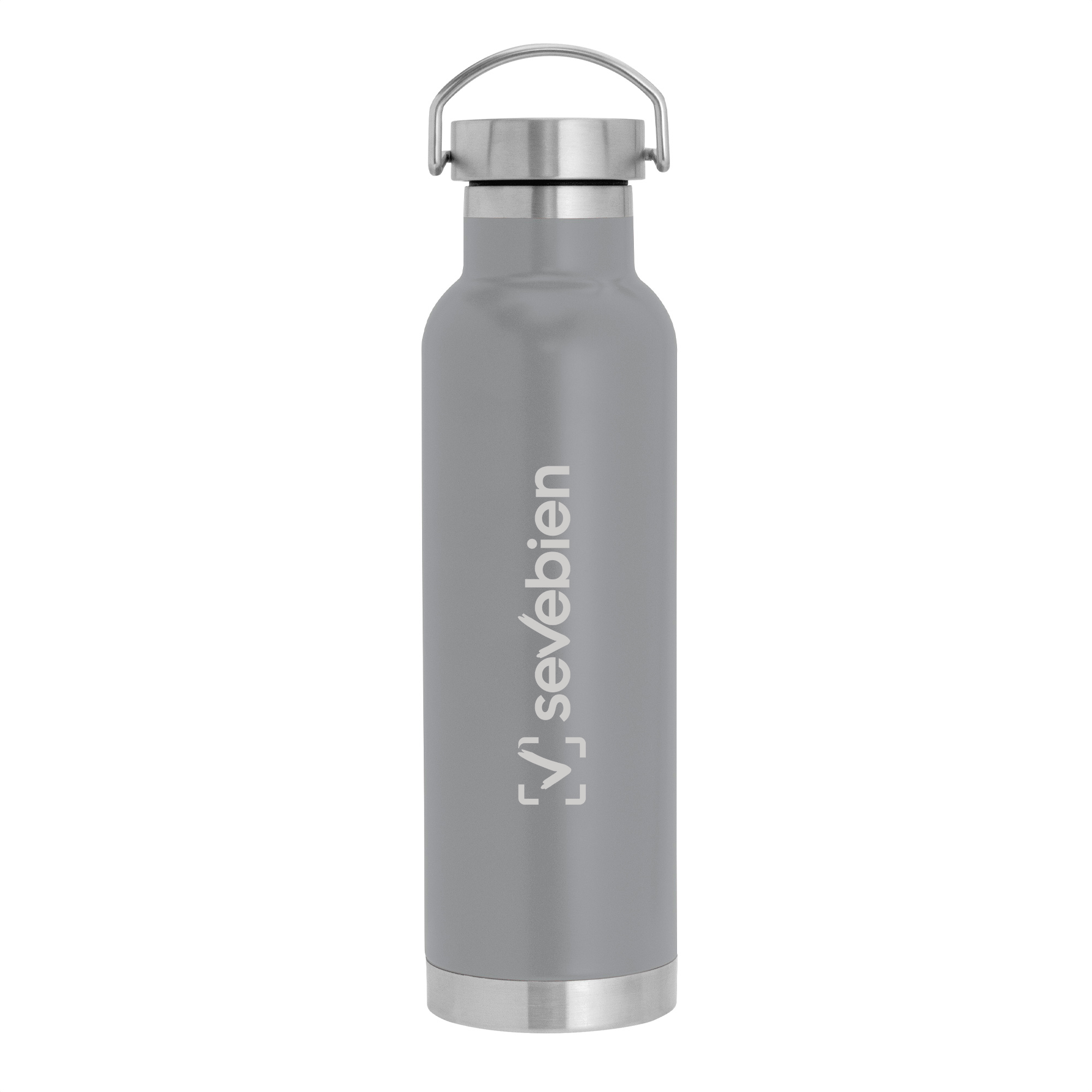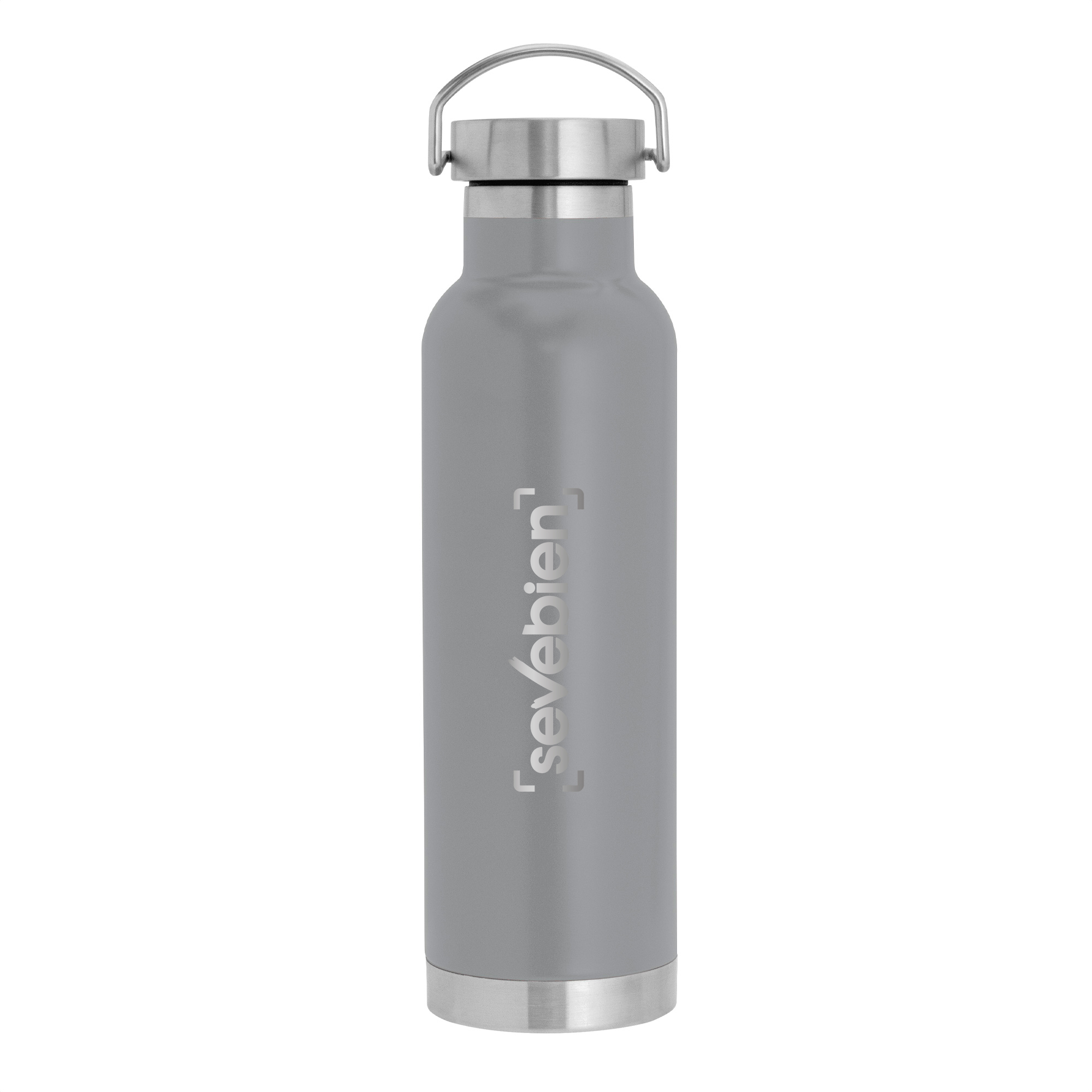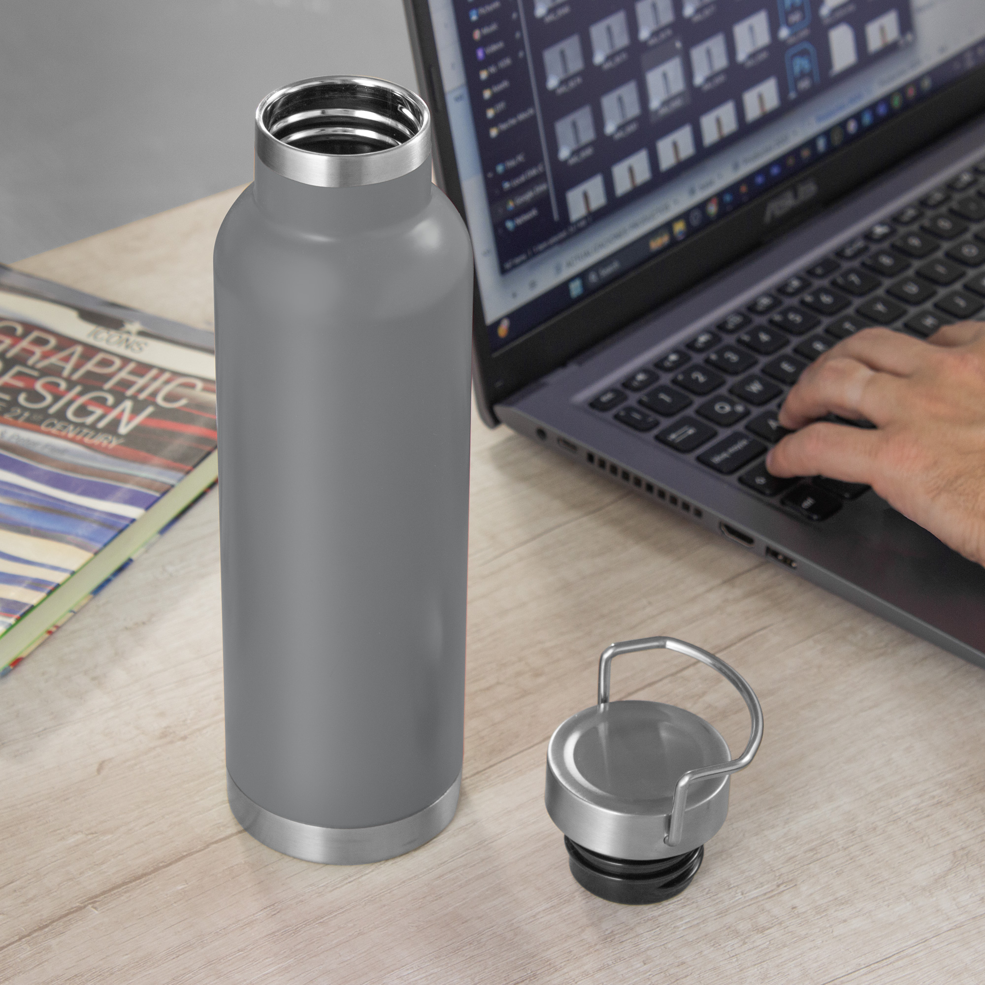 Ø 7,3 x 26 cm. Capacidad 650 ml. Acero inoxidable. Botella doble pared, sellada al vacío. Interior en acero 304 y exterior en acero 201. Tapa de acero a rosca con manija rebatible metálica . La medida de este termo es tan practica que con el tendras el liquido necesario para estar hidratado en el momento del día que elijas. Mantiene hasta 12 hs la temperatura de las bebidas calientes y 24 hs de las bebidas frías. Presentación en caja de regalo.