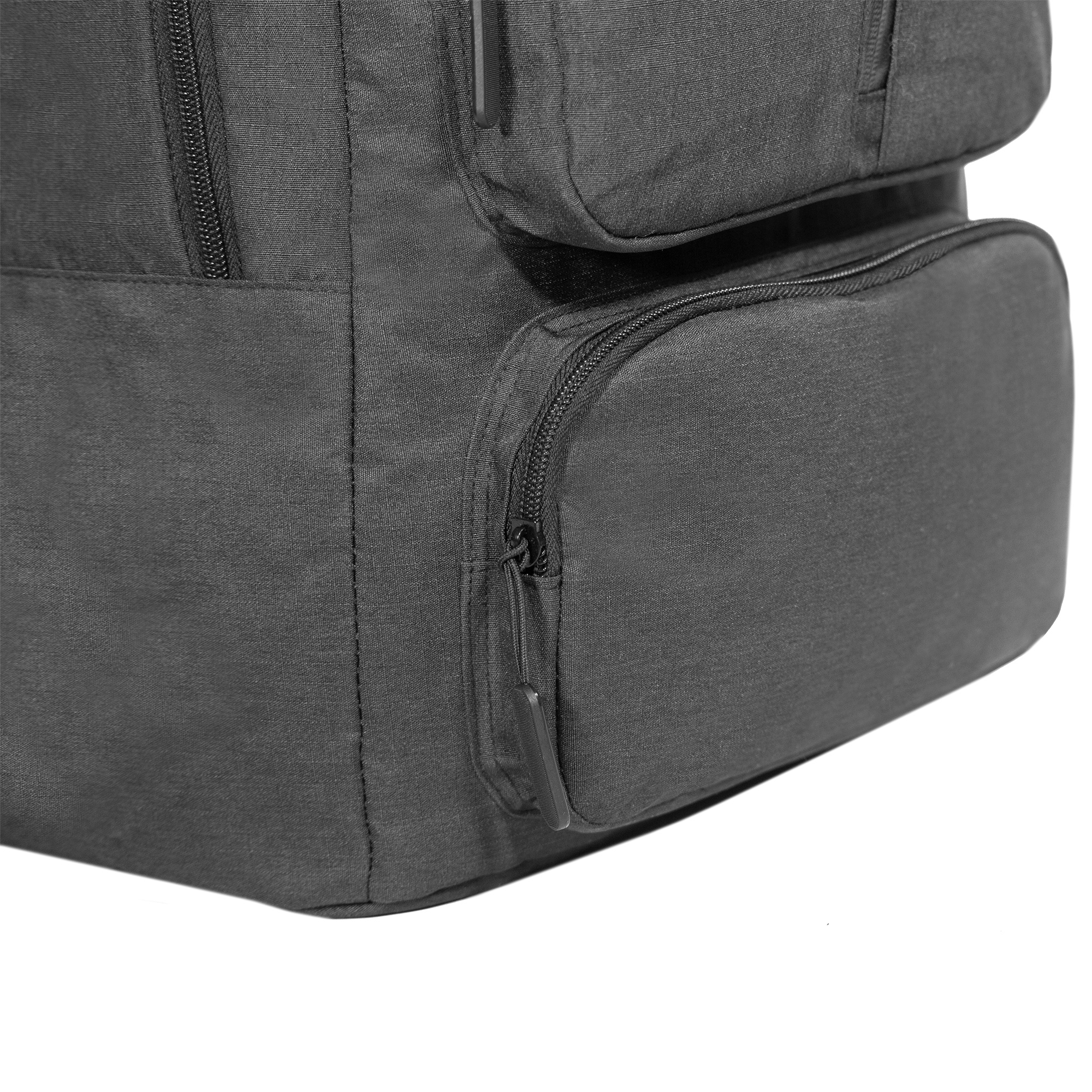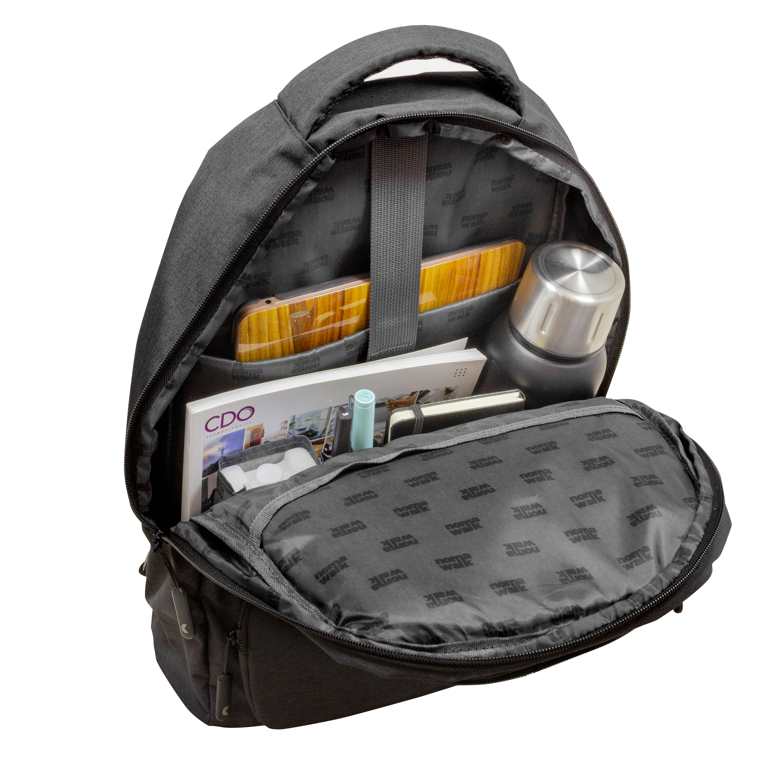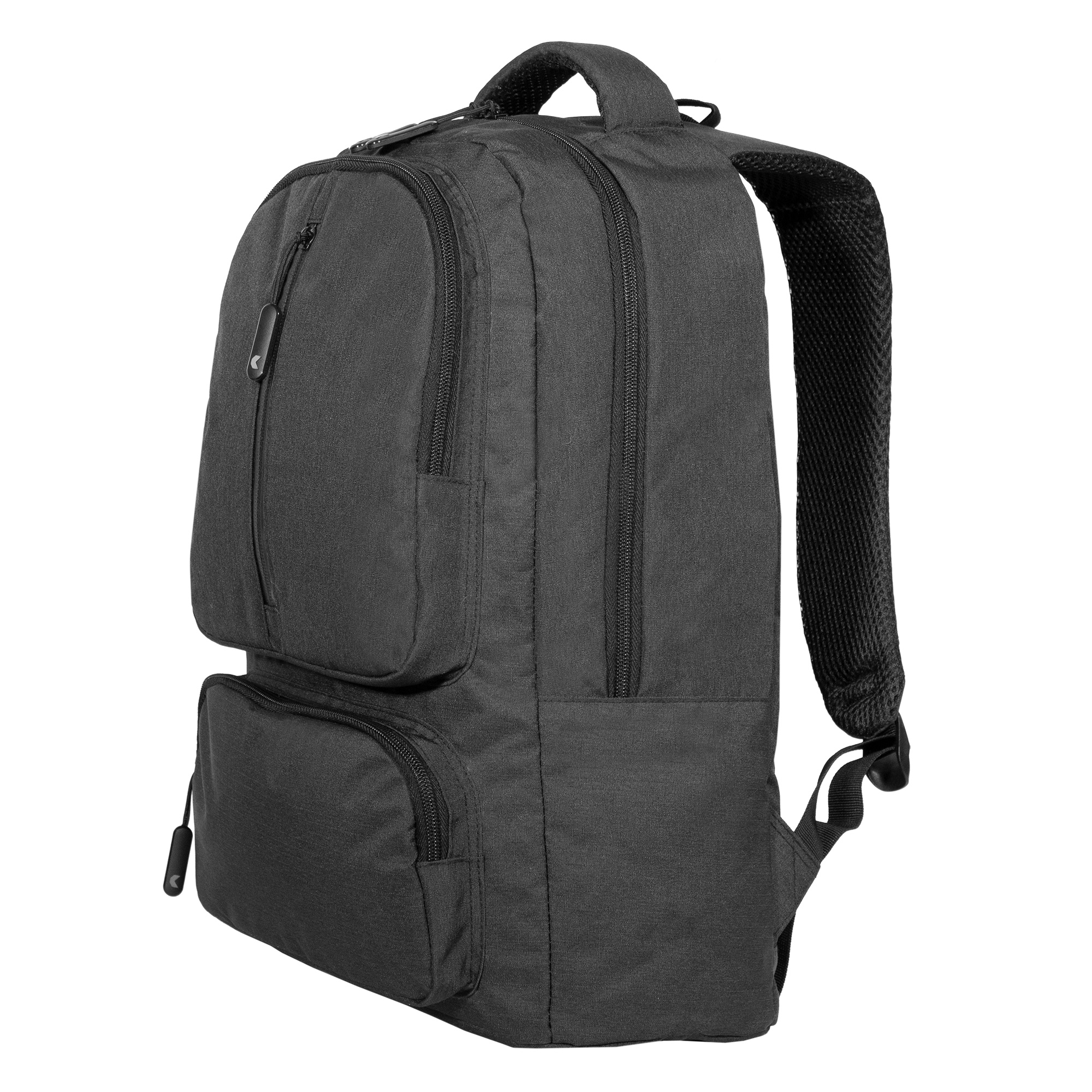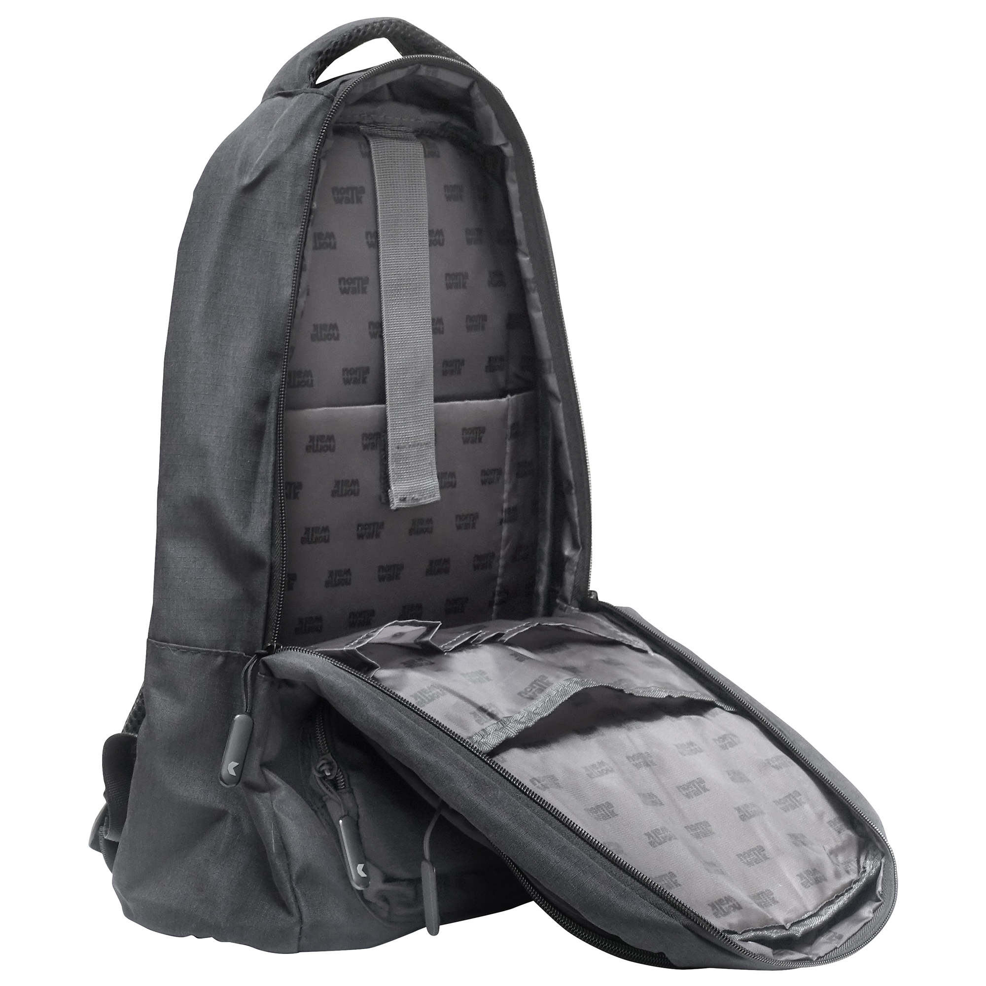 31 x 42 x 12 cm. Capacidad 15,5 litros. Polyester 300D Wulong. Mochila portanotebook de hasta 16 pulgadas. Compartimento principal con bolsillo porta notebook. Dos bolsillos frontales con cierre y un bolsillo horizontal con cierre. Manija superior, espalda con red y correas acojinadas. Tira para sujetar la mochila en la manija extensible de un equipaje de mano. Tiradores de cierres metálicos. Presencia de marca en el interior y en una de sus correas.