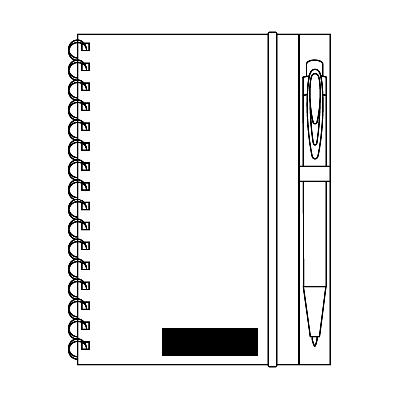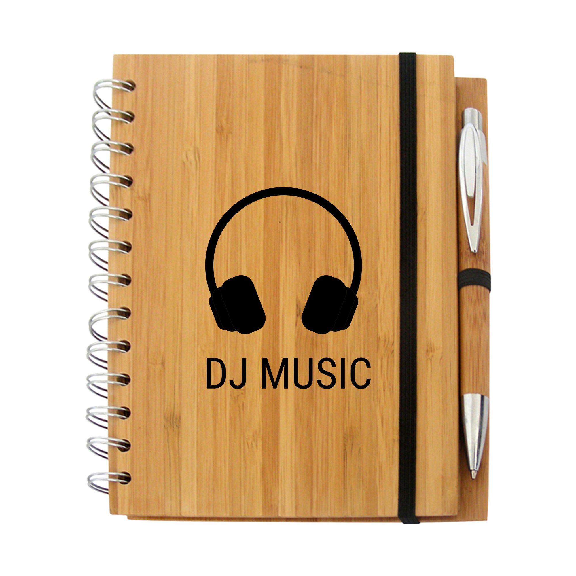 13,5 x 2 x 18 cm Madera. Incluye block de hojas recicladas, espiral metálico, presilla porta bolígrafo y bolígrafo con cuerpo de madera, pulsador, clip y puntera color plata y tinta negra. Detalles en color plata mate. Cierre con banda elástica.