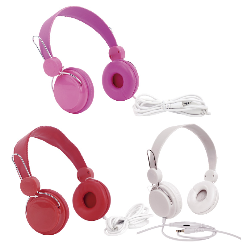 Ø 20 cm. Aprox. Plástico, símil cuero y metal. Sistema de sujeción con regulación en ambos lados. Sonido Stereo. Cable de aprox. 230 cm. con control de volumen incorporado. Conector 3,5 mm. AMPLIA SUPERFICIE DE IMPRESIÓN (5,5 cm aprox).