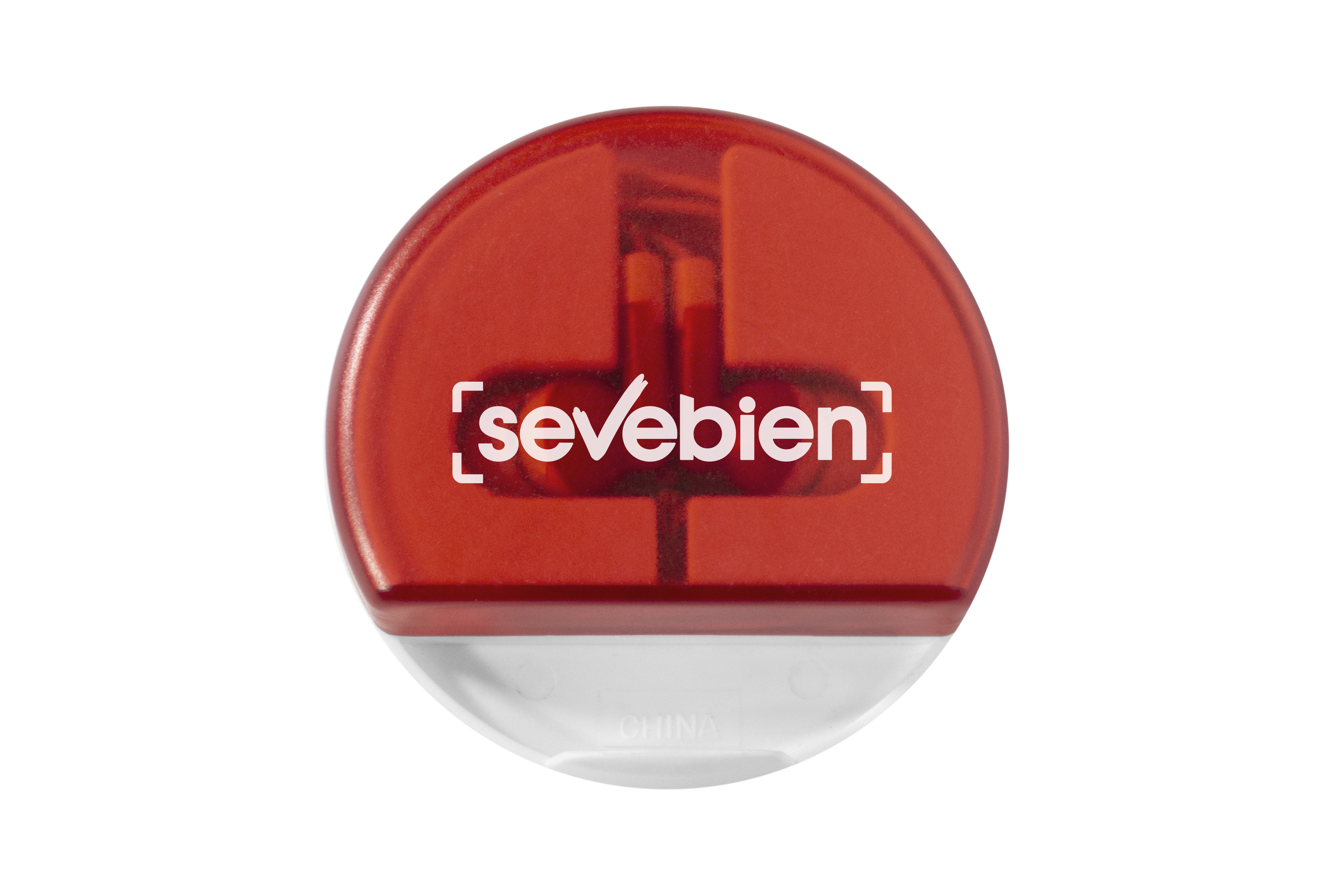Ø 6,5 cm. Plástico. Audífonos con estuche que permite enrollar cable y ranura que funciona como soporte para celular. Cable de 1,5 mts. Conector 3,5 mm. Sonido stereo.