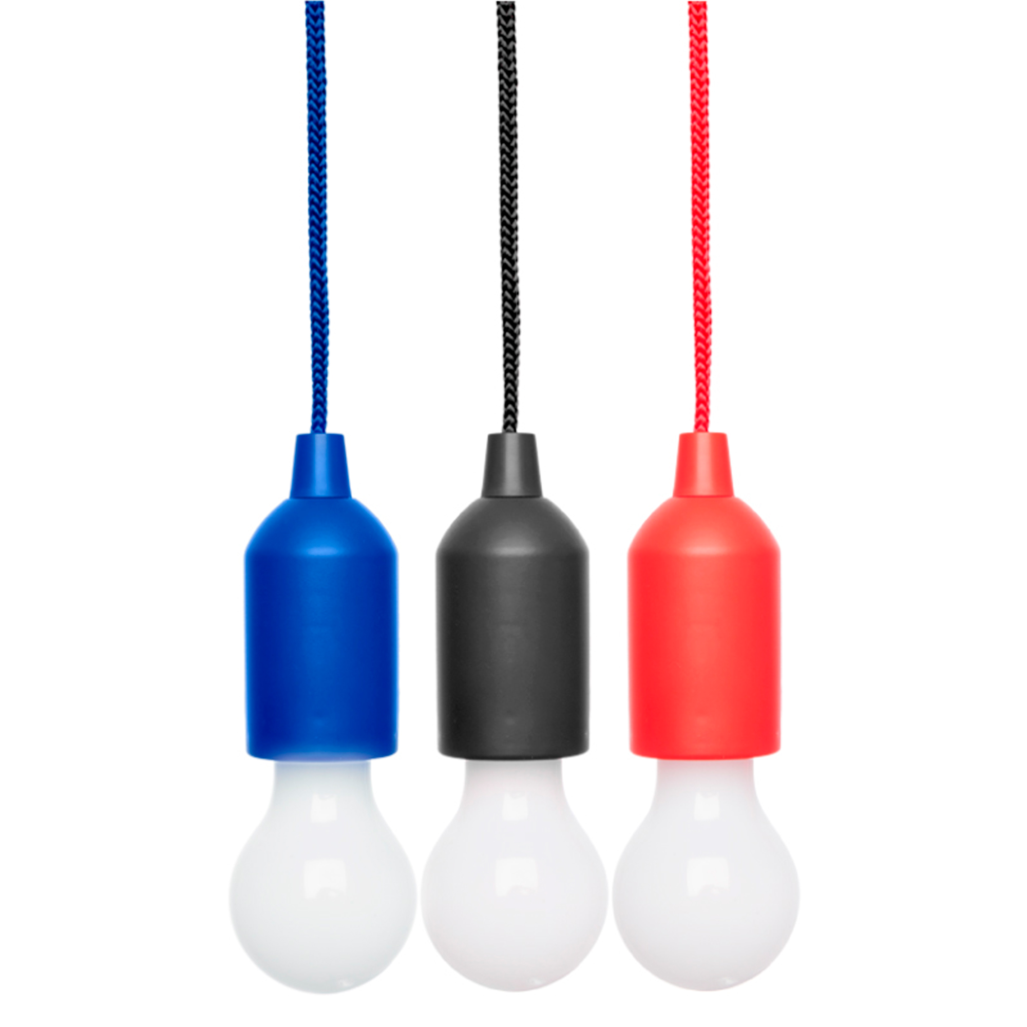 80 cm (largo del cordón). Plástico. Lampara con luz led. Contiene un lazo que al tirarlo enciende y apaga la luz de la bombilla. Utiliza 3 baterías AAA (no incluidas)