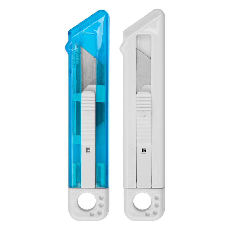 12,5 x 2,5 cm. Plástico. Cutter con hoja de corte retráctil para su seguridad.