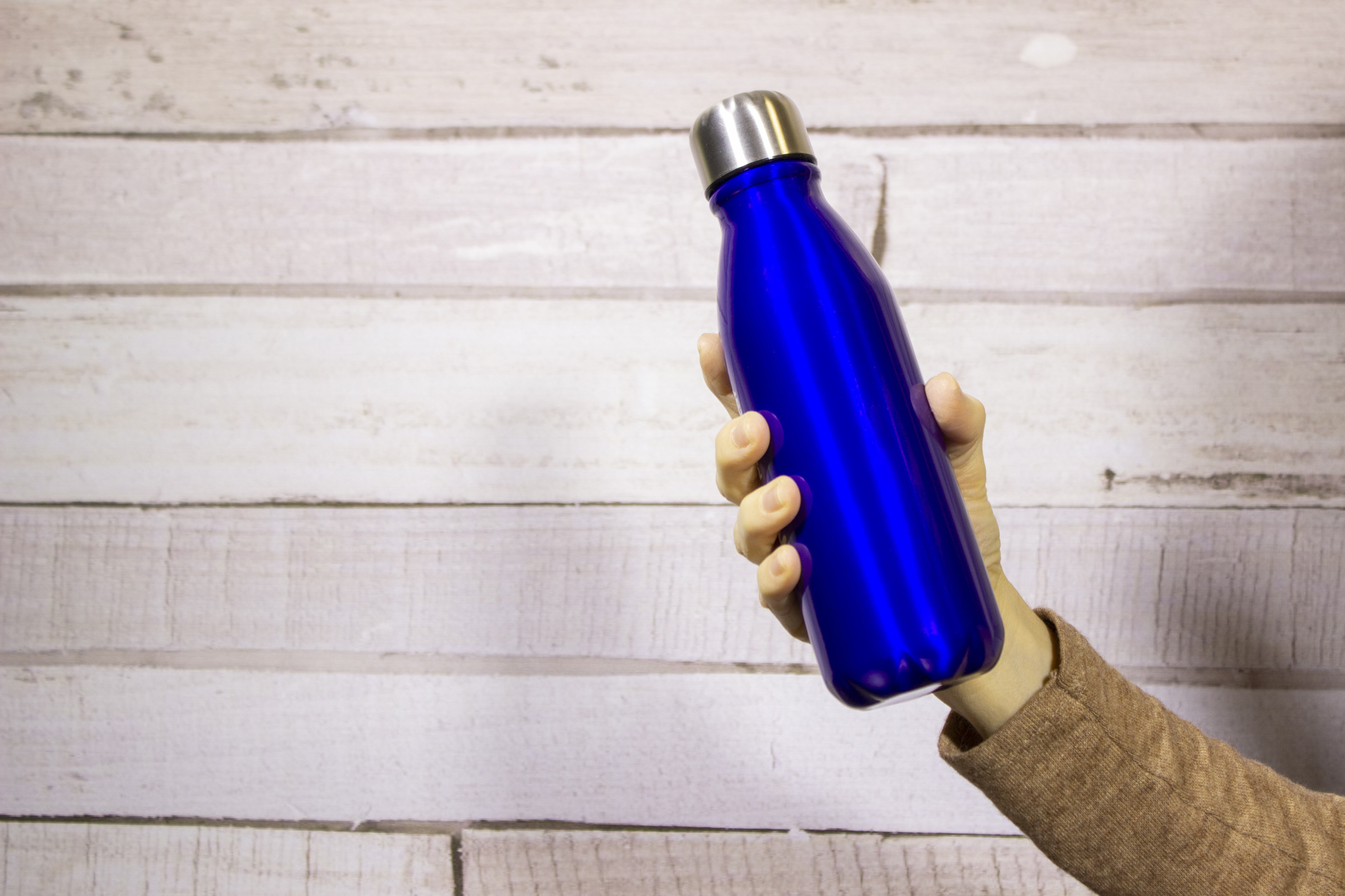 Ø 6 x 22,5 cm. Capacidad 550 ml. Aluminio. Botella de aluminio, cuerpo de diferentes colores.Tapa de acero a rosca.