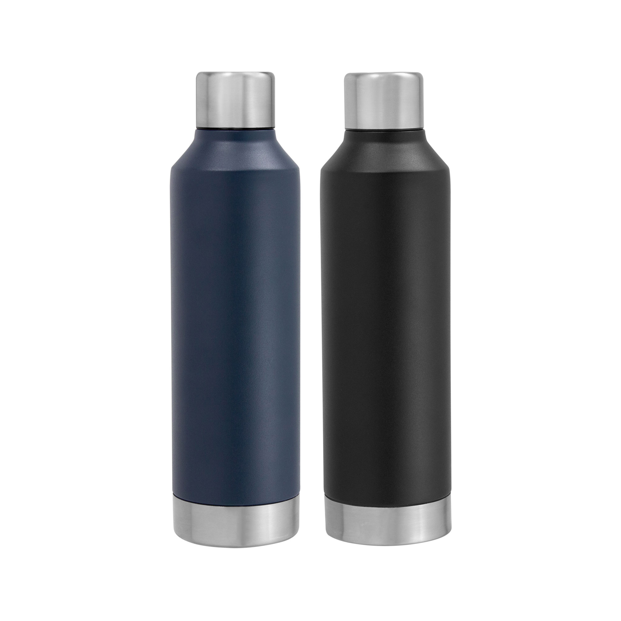 Ø 7 x 25 cm. Capacidad 550 ml. Acero inoxidable. Botella doble pared, sellada al vacío. Interior en acero 304 y exterior en acero 201. Tapa de acero 201 a rosca con anillo de silicona. Pintura Powder coat (pintura más duradera y resistente a la corrosión y el paso del tiempo). Mantiene hasta 12 hs la temperatura de las bebidas calientes y 24 hs de las bebidas frías. Presentación en caja de regalo Kraft.