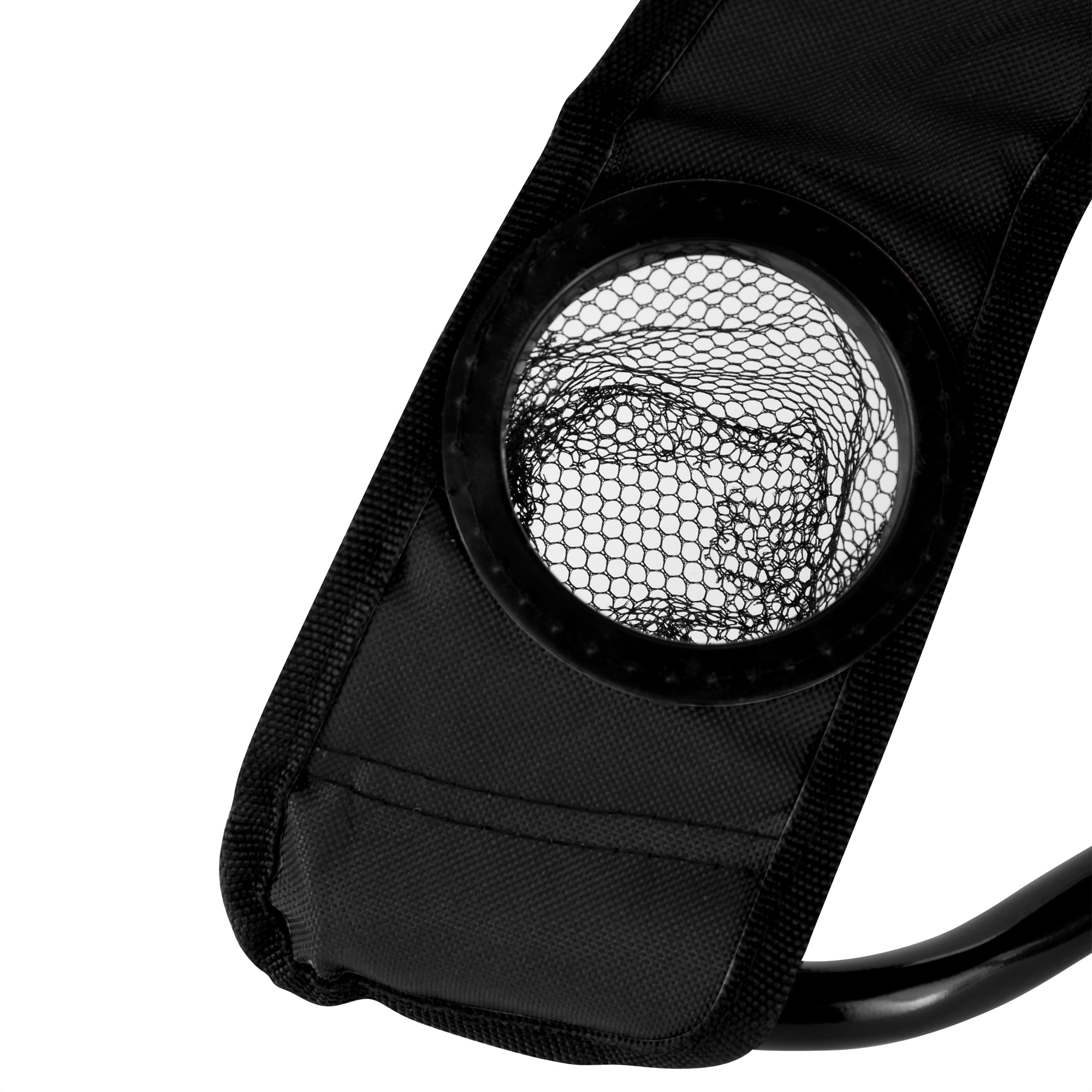 Silla Camping Director plegable con apoyabrazos. Estructura con tubos de hierro. Asiento y apoyabrazos de poliéster600D con revestimiento de PVC y costuras reforzadas. Incluye red portabotellas color negro. Funda del mismo color con cierre ajustable y correa color negro para su mejor traslado.