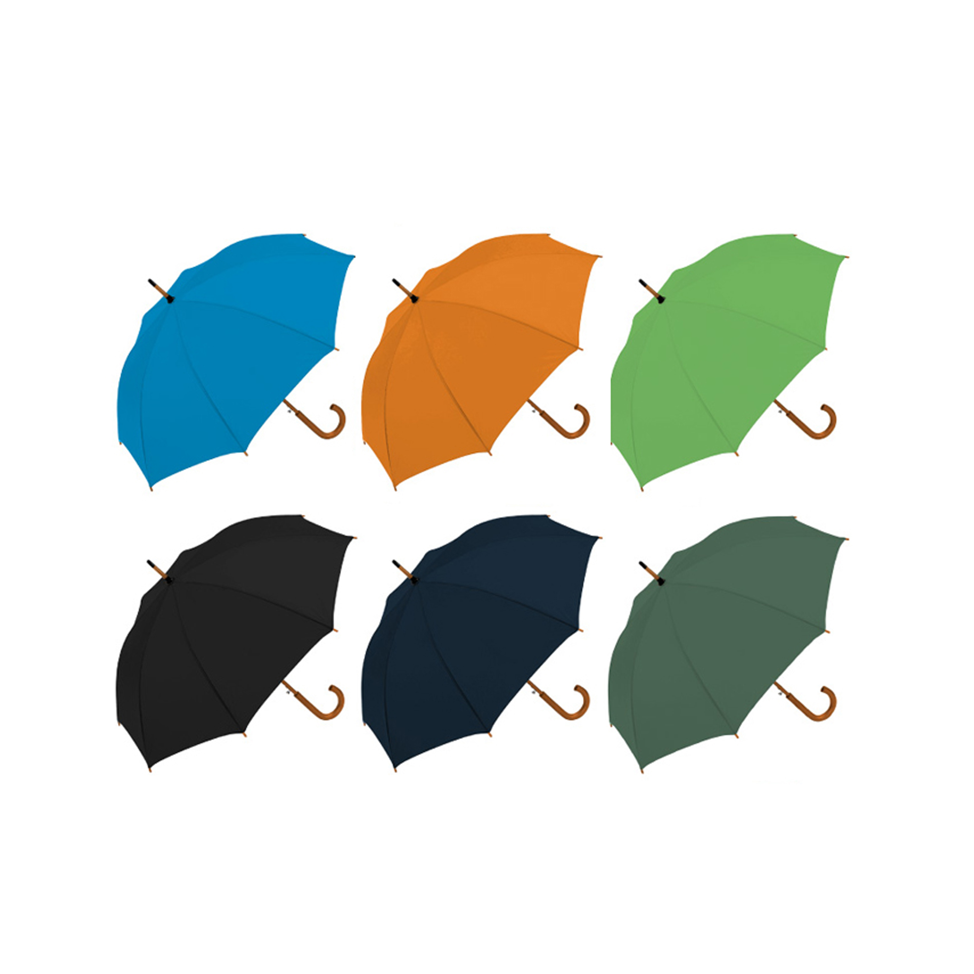 Ø 100 cm.Poliéster de 27" Aprox. Vara de madera, mango curvo de madera, automático. 8 gajos. Longitud de vara: 89 cm. Varillas metálicas APERTURA AUTOMÁTICA. Largo total 89 cm. 8 cascos. Medida de gajos 40x59 cm. Cobertura de 103 cm. Ancho de vara de 1,3 cm.